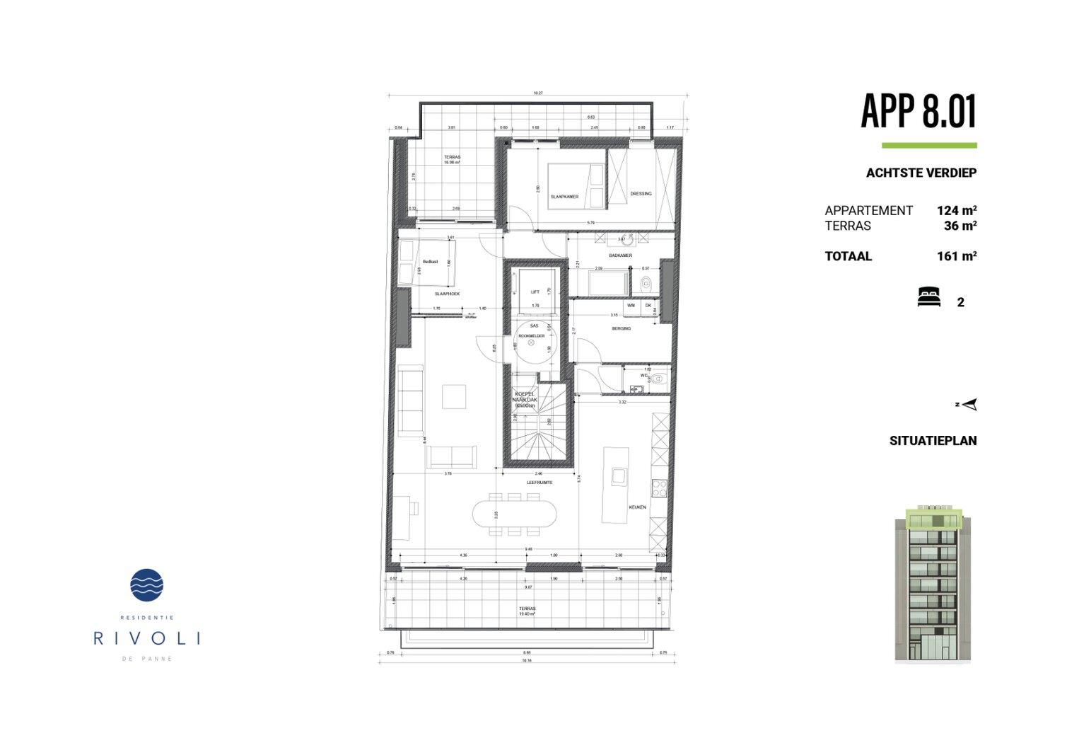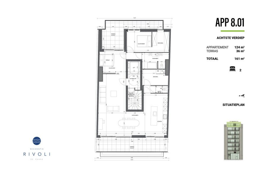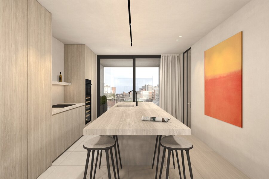 Mooi Penthouse appartement op de 8st verdieping met een bewoonbare oppervlakte van ca. 124m² en ca. 36m² terras. 2 slaapkamers, ruime woonkamer met open keuken en voorzien van alle comfort.