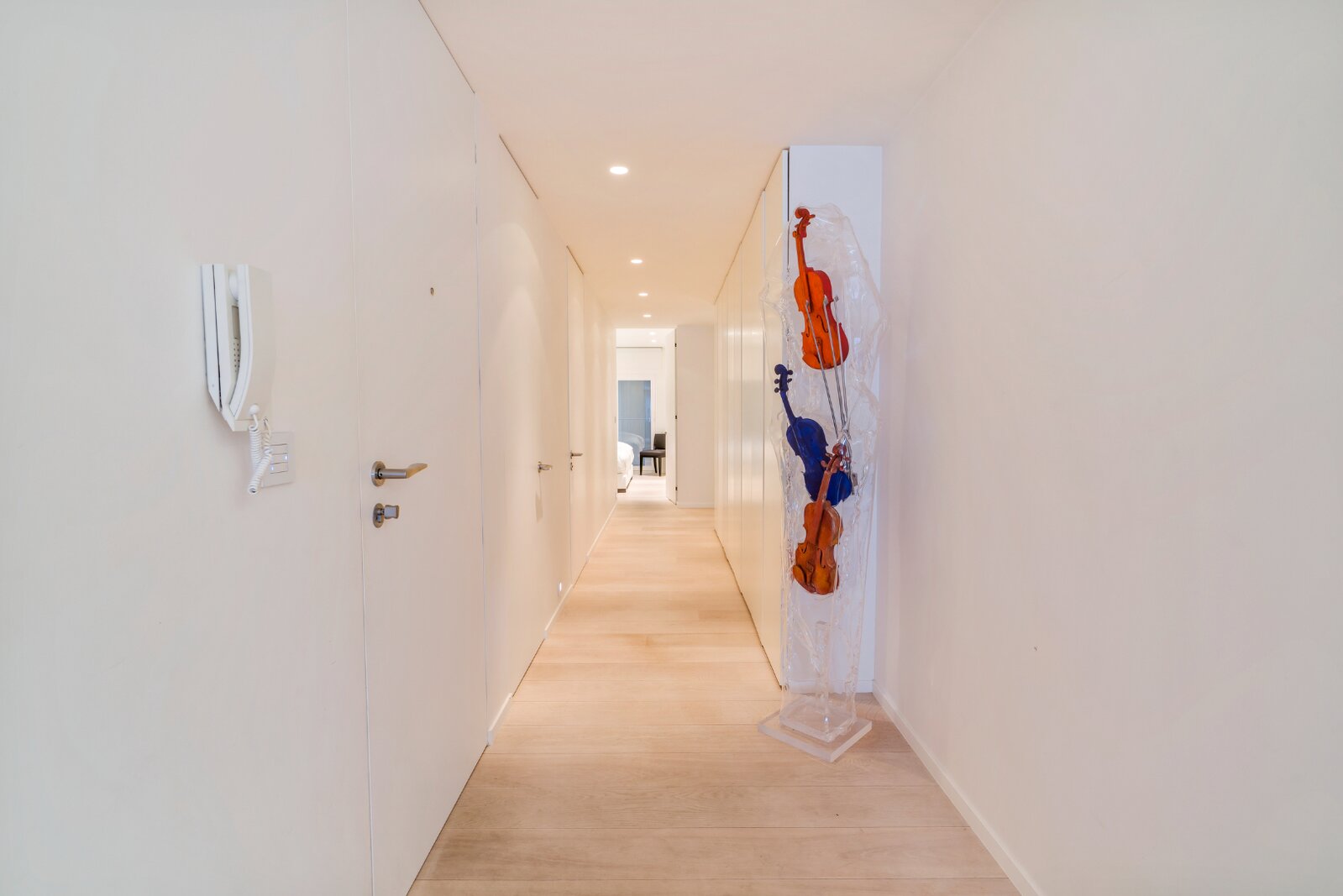 Inkomhal met gastentoilet, ingemaakte kasten en praktische berging. Ruime leefruimte met luxueuze open keuken, eethoek en zitruimte met haard. Formidabele zichten over de zee en het Rubensplein. Tal van ingemaakte kasten. Hoofdslaapkamer met ingemaakte kasten en ensuite badkamer (wastafel en inloopdouche). Twee gastenkamers, dewelke een badkamer (wastafel en bad) delen op de nachthal. Zuidgericht terras achter dewelke te bereiken is via 2 slaapkamers.