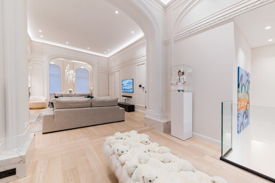 Op de begane grond van een prachtig klassiek gebouw uit 1902, volledig gerenoveerd door Bruno Erpicum, ligt dit grote duplex-appartement van ± 239 m² met een tuin van ± 2 are.