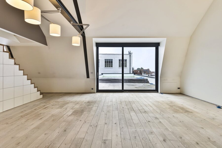 Gelegen in een rustige omgeving en op korte afstand van het openbaar vervoer, zal deze uitzonderlijke triplex loft (penthouse van ±170 m²) u verleiden met zijn vele unieke kenmerken. De loft bestaat uit een grote woon- en eetkamer, badend in licht dankzij de grote ramen met automatische verduisteringsgordijnen, die voor volledige privacy zorgen.