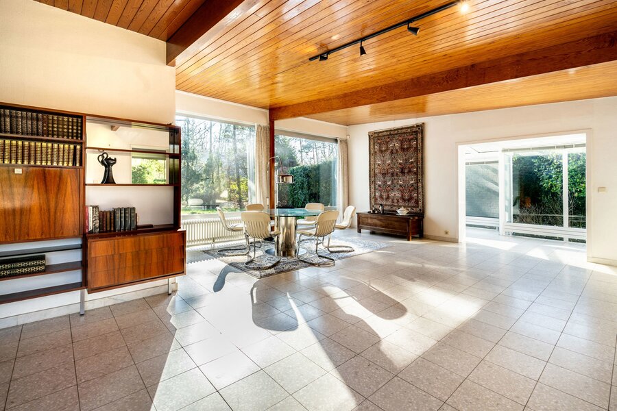 In een gewilde straat in de wijk Prins van Oranje ligt deze villa uit de jaren 1960, ontworpen door architect Jan Van Coppenolle, met een oppervlakte van bruto 300 m² (volgens het PEB) op een perceel van 15 are.