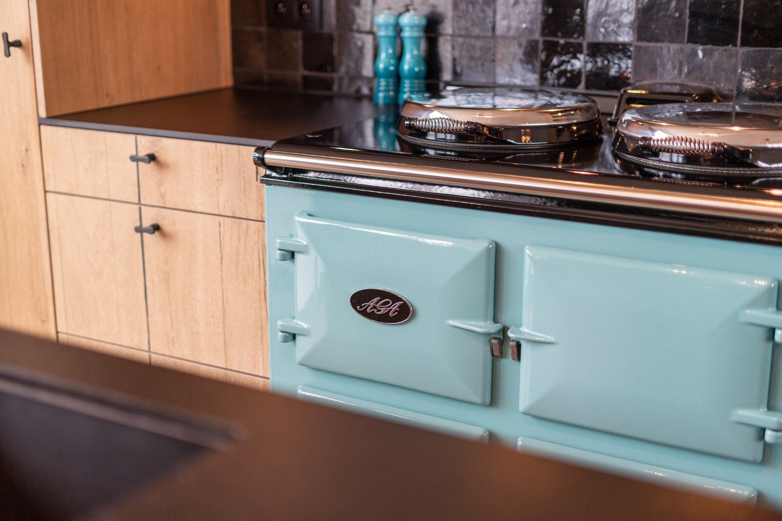 De keuken is luxueus ingericht en met als eyecatcher een AGA fornuis.