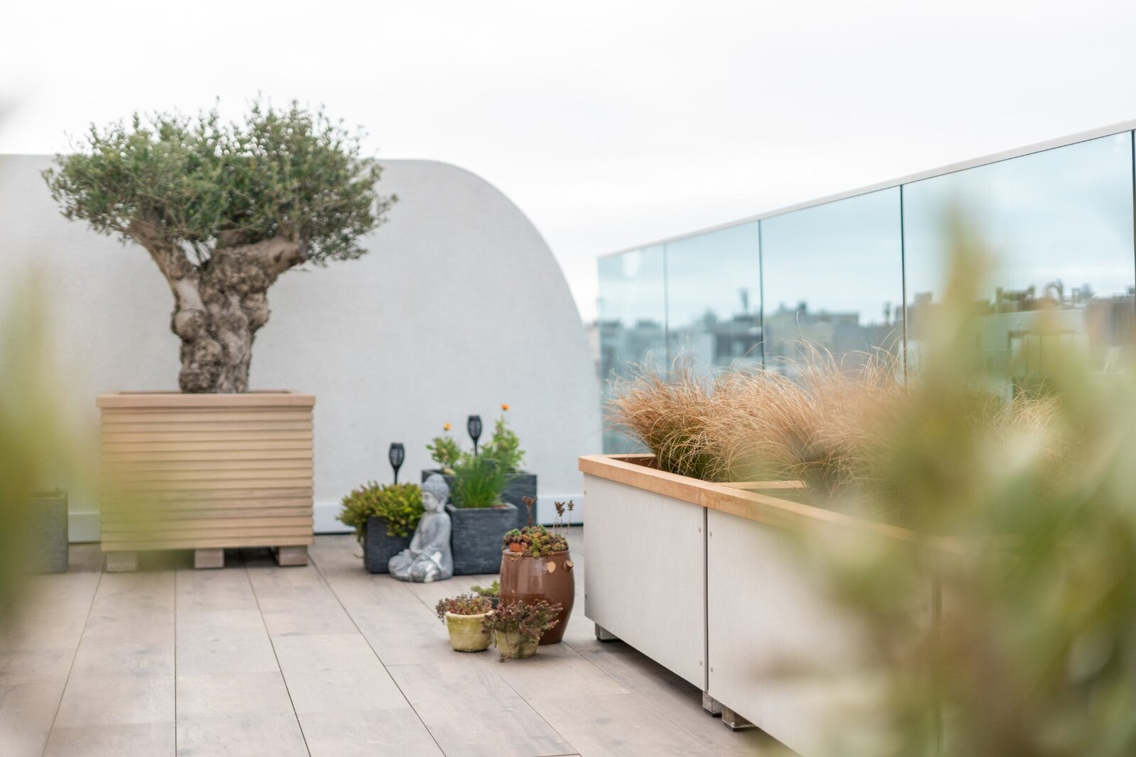 Een van de absolute hoogtepunten van dit penthouse is het ruime terras van 100m² waar je kunt genieten van de zon en het uitzicht. Het terras is de perfecte plek om te ontspannen en te genieten van het buitenleven, of om vrienden en familie uit te nodigen voor een gezellige avond.