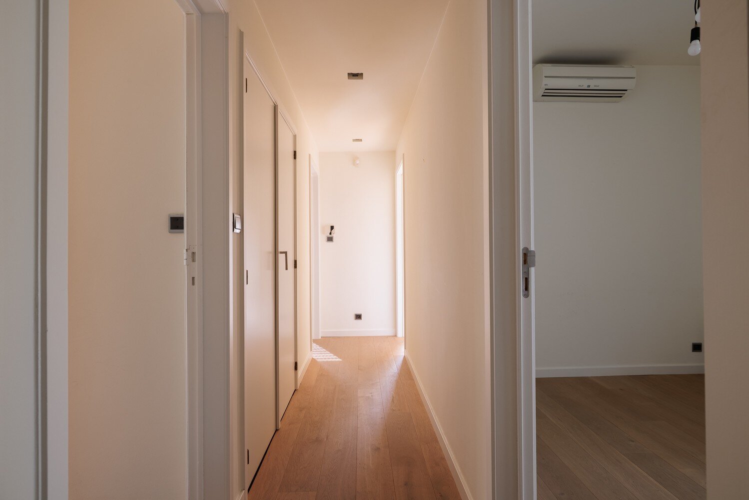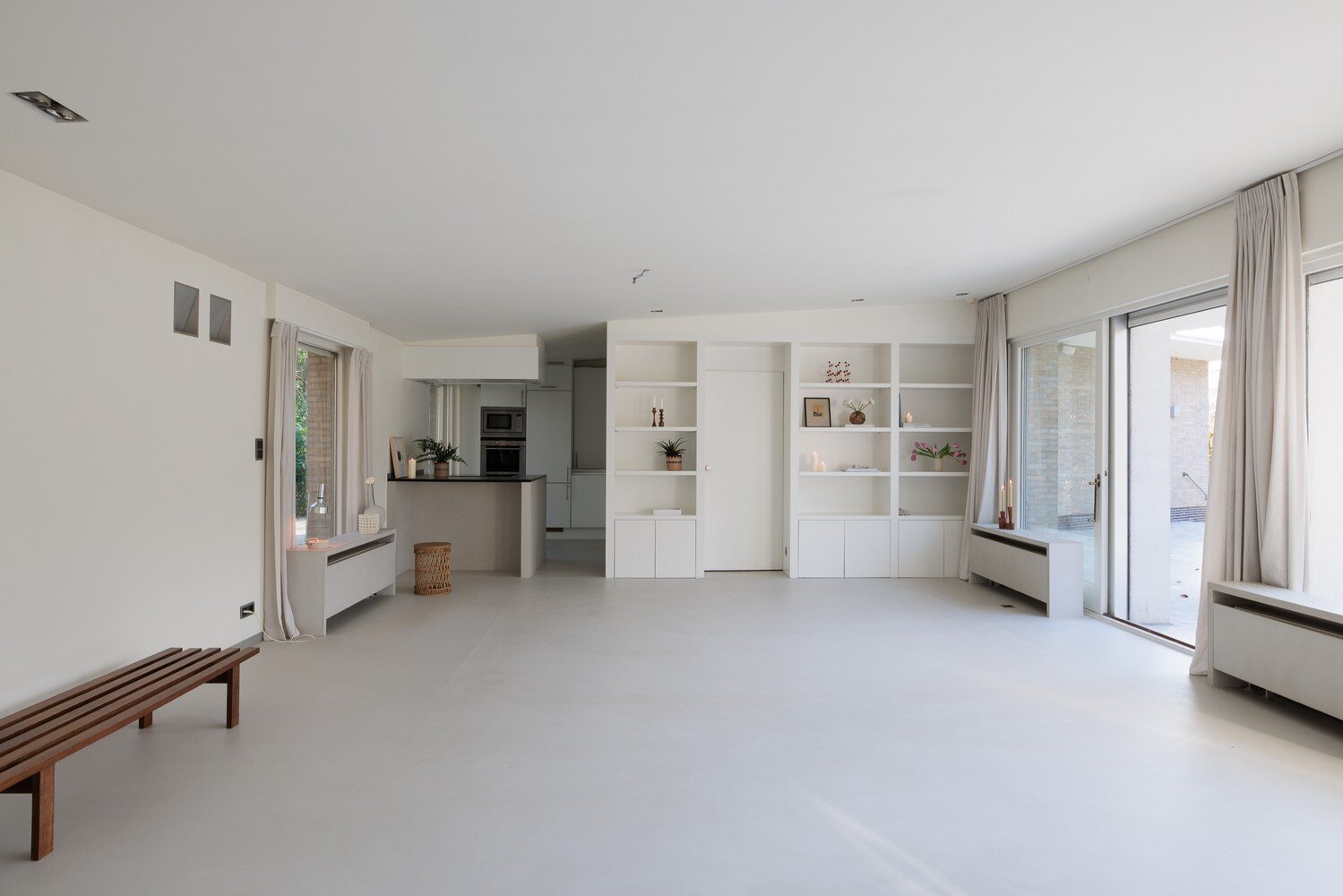 Bij binnenkomst wordt u verwelkomd in een inkomhal met vestiaire en gastentoilet. De lichtrijke woonkamer baadt in het daglicht dankzij de grote raampartijen die een prachtig zicht bieden op de tuin en directe toegang verlenen tot het zonnige terras. De open keuken, is discreet geïntegreerd in de ruimte.Het slaapgedeelte bevindt zich aan de andere zijde van de woning en omvat 4 slaapkamers, een apart toilet en een badkamer met ligbad, inloopdouche en dubbele lavabo. Verder beschikt de woning over een ruime kelderverdieping met een wasruimte, extra bergruimte en een polyvalente ruimte die naar wens kan worden ingevuld.