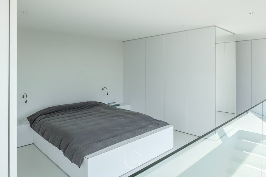 Op de eerste verdieping vindt u een polyvalente ruimte, ideaal als bureel, hobbykamer of eventueel extra slaapkamer. Daarnaast zijn er twee slaapkamers, een moderne badkamer met regendouche en een apart toilet. De tweede verdieping is ingericht als suitekamer, compleet met dressing, apart toilet en een open badkamer met zowel een ligbad als regendouche. Dit alles met een spectaculair zicht naar buiten.