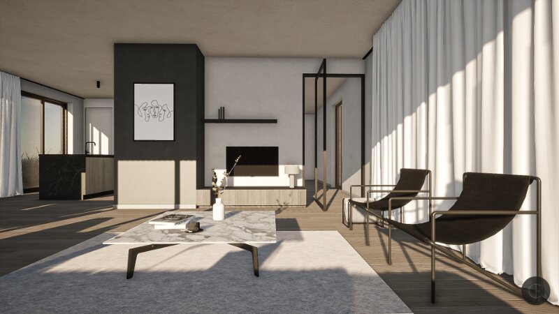 - Ruime leefruimte voorzien van grote raampartijen