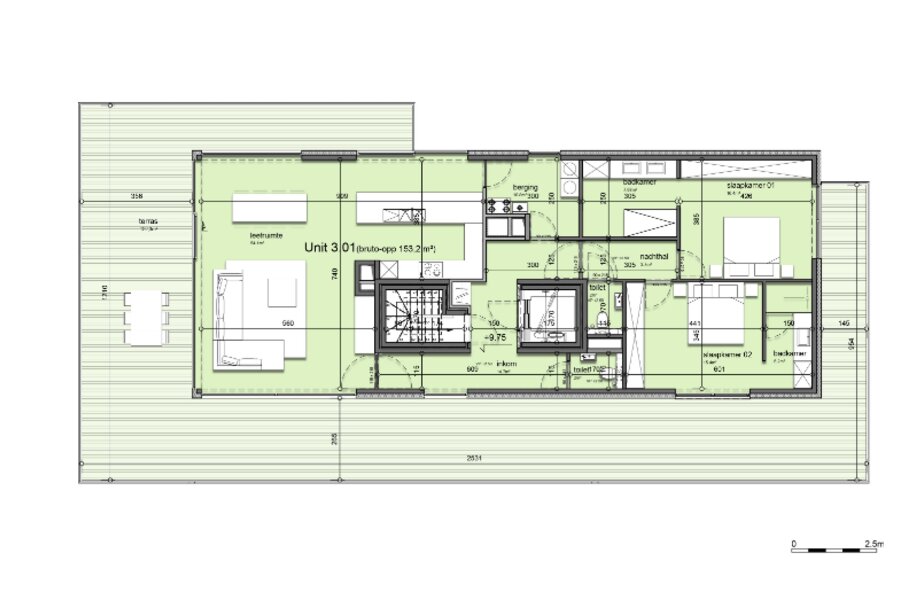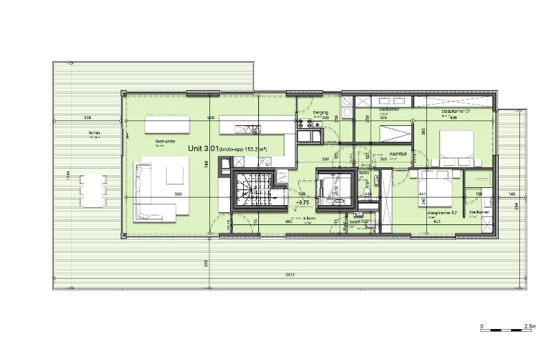 KORTEMARK: Penthouse 3.01 met 2 comfortabele slaapkamers, 2 ensuite-badkamers en 111.6m² uitgestrekt zitterras gelegen op de derde verdieping van Nieuwbouwresidentie Mila en Nora