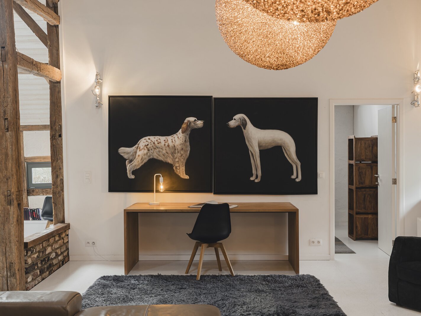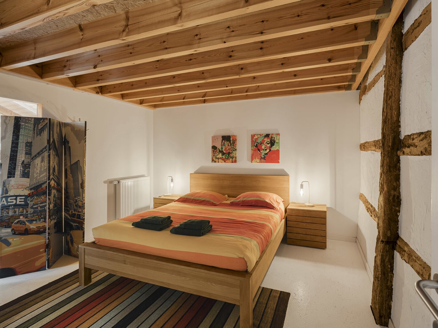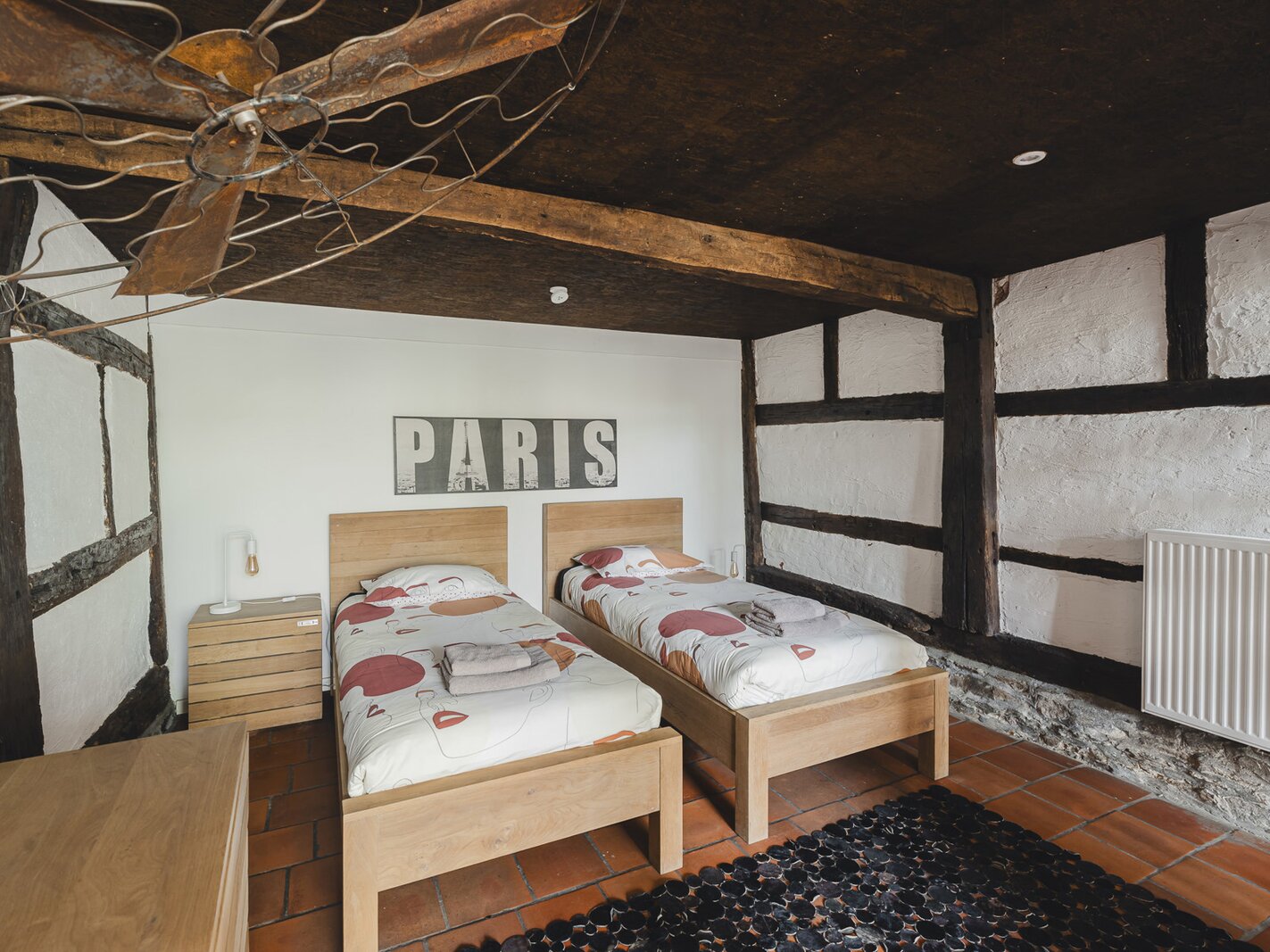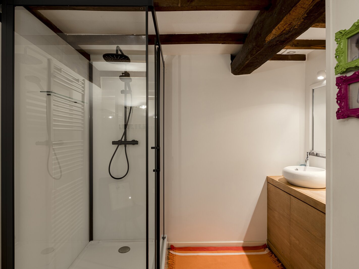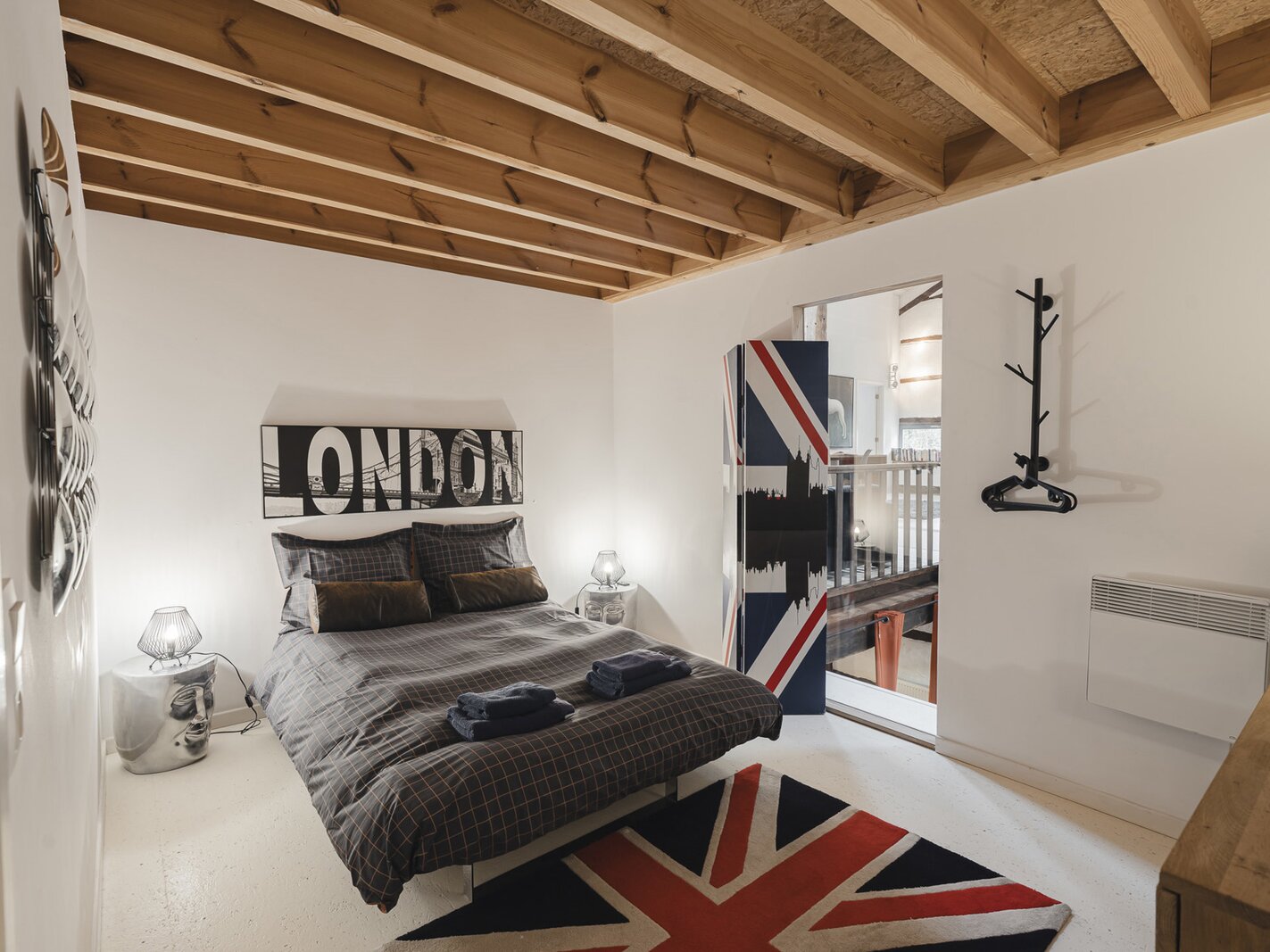 een grote raamkozijn dat veel natuurlijk licht binnenlaat. De gerenoveerde voormalige schuur heeft zijn originele balkenplafond en prachtige hoge plafonds behouden. De mezzanine leidt naar een leefruimte met een ruime zitkamer, een speelkamer met biljart, WC, 3 slaapkamers en 2 badkamers. Het tweede deel heeft 4 ruime slaapkamers en 2 badkamers.