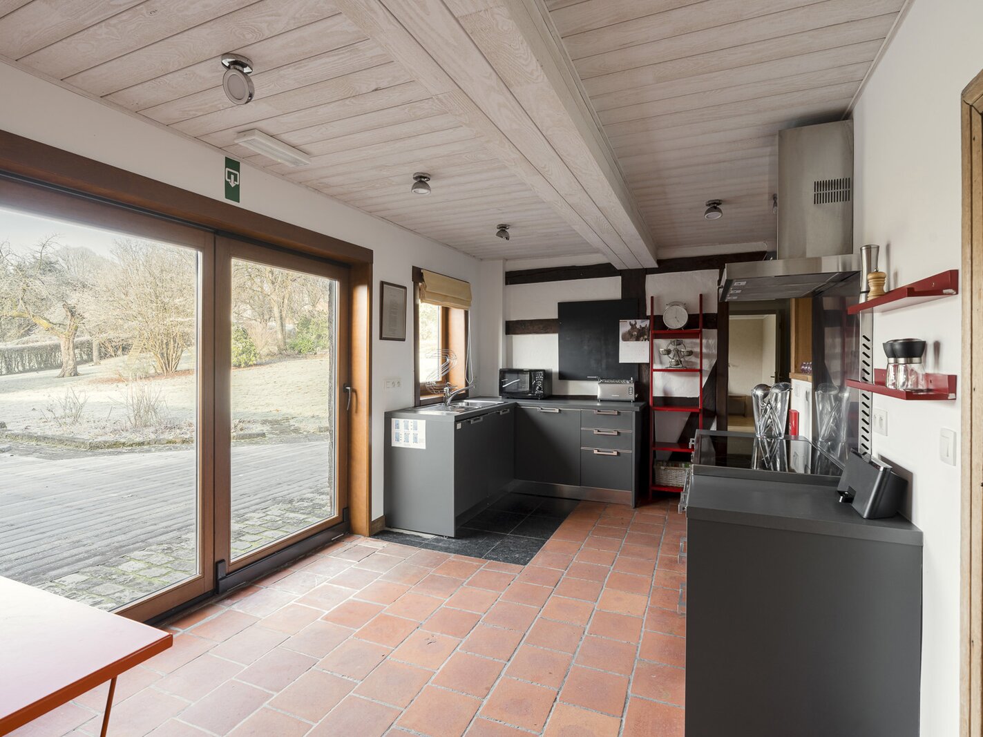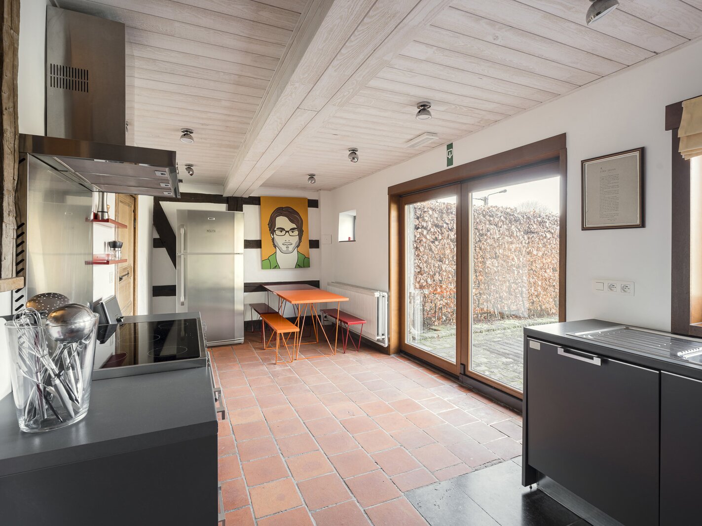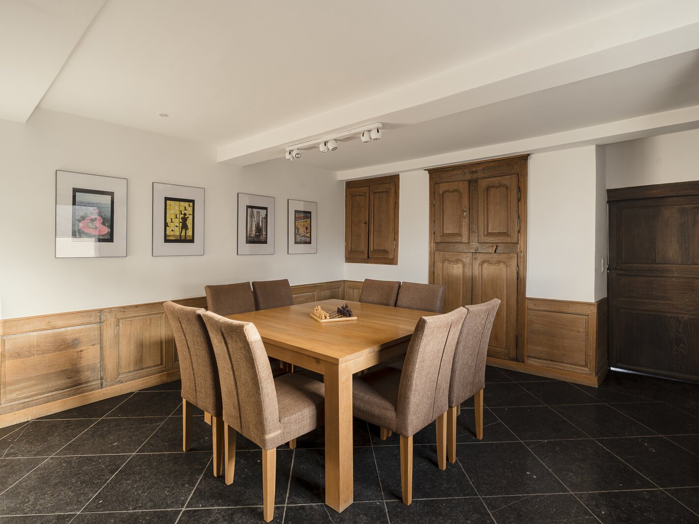 omgebouwd tot een ruime eetkamer met een open, volledig uitgeruste keuken. Het is een