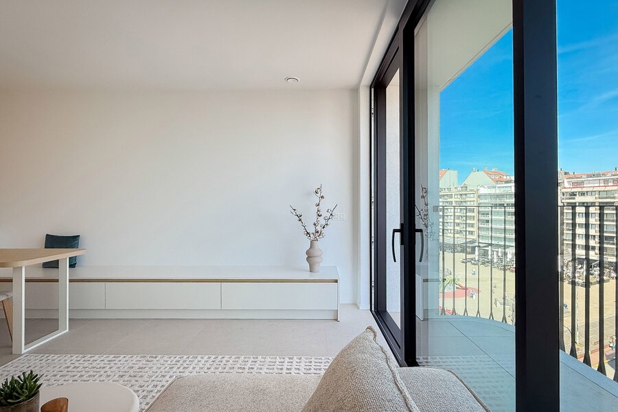 Laat je betoveren door dit recent opgeleverde appartement, gelegen op een unieke locatie in het bruisende centrum van Knokke, met een open zicht en directe blik op het levendige Van Bunnenplein. Een echte parel voor wie comfort en verfijning weet te waarderen.