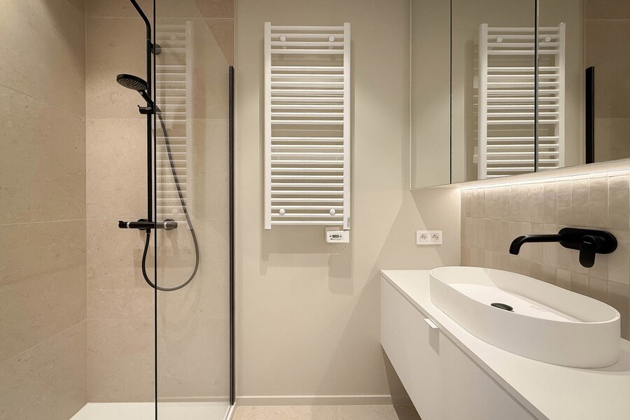 De 2 slaapkamers zijn eveneens uitgerust met ingebouwde kasten en ademen rust en stijl uit. De zorgvuldig gekozen materialen en harmonieuze inrichting creëren een tijdloze, exclusieve sfeer waarin het heerlijk thuiskomen is. 1 Afzonderlijke, luxueus ingericht badkamer. Beide kamers geven uit op een terras aan de achterzijde.