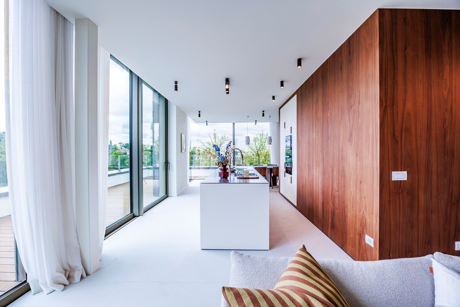 Deze exclusieve penthouse combineert een strak design met praktische luxe, zoals een privélift, open leefruimtes en perfect georiënteerde terrassen.
