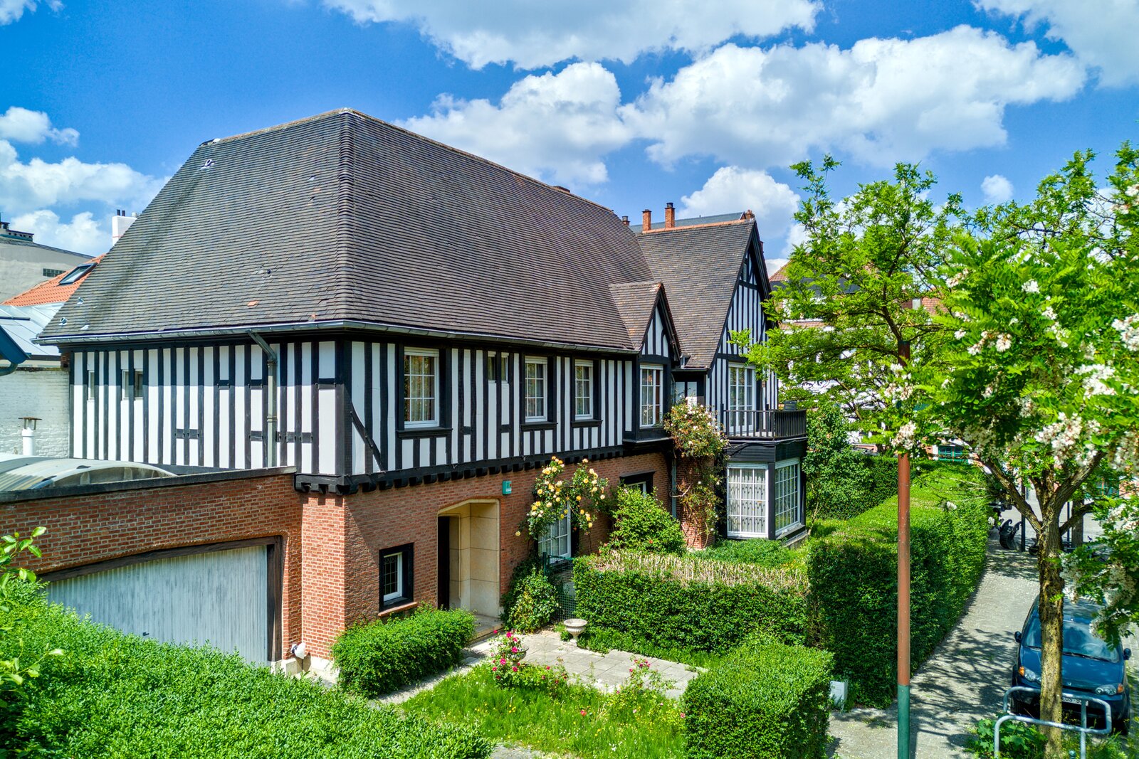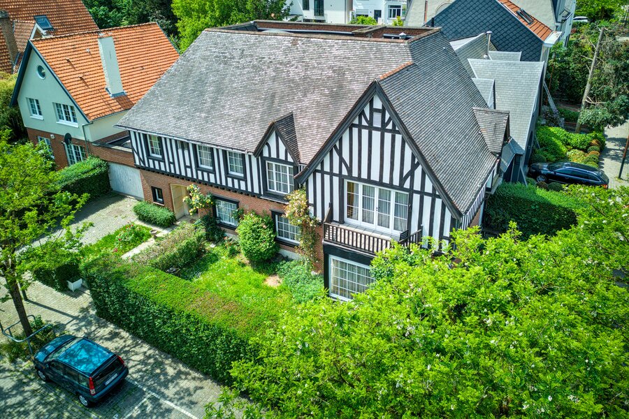 Op een bevoorrechte locatie aan de rand van het Terkamerenbos, in het hart van de zeer gewilde wijk Vert Chasseur, biedt deze prachtige villa in Normandische stijl uit 1959 een uitstekend ontwikkelingspotentieel door het op te delen in 2 duplexappartementen of eventueel professionele/kantoorruimte (45% toegestaan). Bebouwde oppervlakte +/- 445 m², gelegen op een perceel van +/- 4 are12. Het beschikt momenteel over lichte ontvangstruimten, 3 slaapkamers en een zeer grote zolder om te verbouwen. Een grote garage voor 2 wagens vervolledigt de eigendom. PEB G