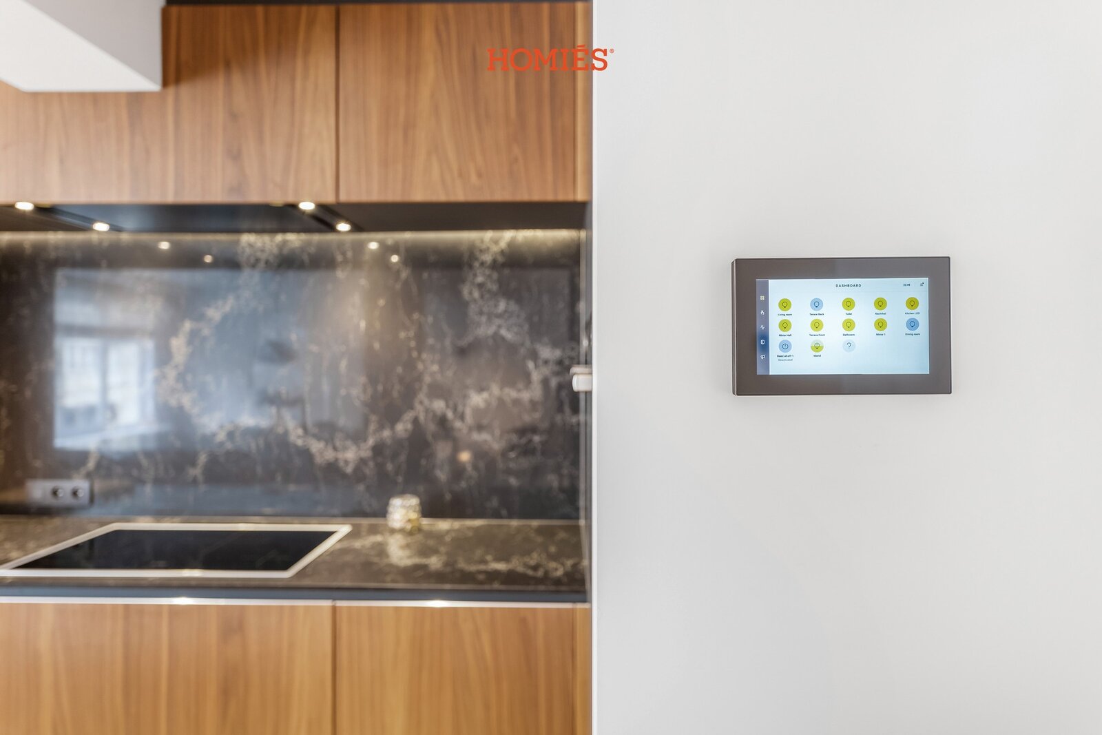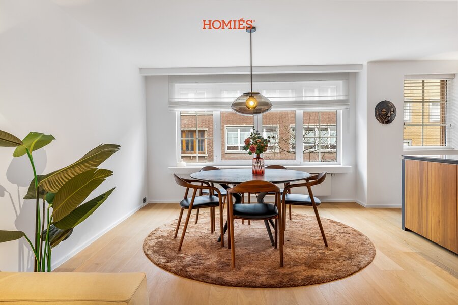 Dit high-end appartement in residentie D’ Residence werd volledig gerenoveerd en situeert zich in het welbekende Nieuw Kwartier. We bevinden ons op de eerste verdieping van een kleinschalige residentie die enkele jaren geleden een volledige make-over kreeg. Dit stijlvol appartement kenmerkt zich door haar hoge afwerkingsgraad met kwalitatieve en duurzame materialen en met het nodige technisch vernuft. De woonruimtes zijn open en u geniet van veel natuurlijke lichtinval en drie terrassen. De luxueuze maatwerkkeuken in notelaar is voorzien van hoogwaardige inbouwtoestellen, tevens biedt ze veel werkruimte en is er plaats voor twee gezellige krukjes. In het gehele appartement zijn custom made kasten voorzien, zodoende alle beschikbare ruimtes voor 100% te benutten. De centrale gang geeft toegang tot drie volwaardige slaapkamers, een stijlvolle badkamer, een was-/bergplaats en een apart toilet. Bijkomende pluspunten zijn: domotica, aanwezigheid van lift, wijnfrigo, prachtige bevloering: Hongaarse punt parket, terrazzo,...tevens is er de mogelijkheid tot aankoop van een riante dubbele garagebox t.w.v 65.000 euro. Dit is het ideale appartement voor mensen die houden van luxe en comfort, in combinatie met een uiterst centrale ligging. info@homies.be of 016/22.82.22.