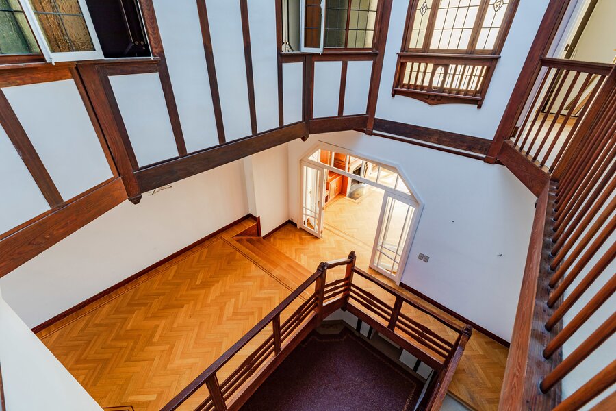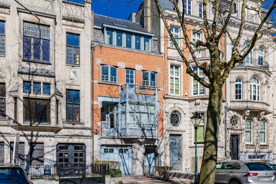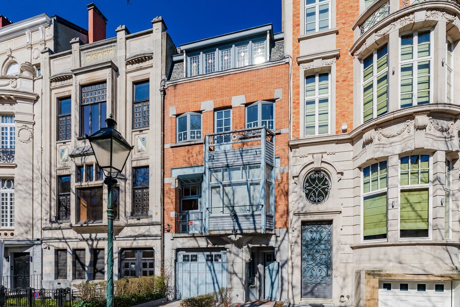 Dit prachtige maison de maître ligt aan de prestigieuze Avenue Molière en valt meteen op door zijn opmerkelijke gevel uit 1912, ontworpen door architect Antoine Pompe. Het is de perfecte belichaming van de Art Nouveau-geest, met zijn combinatie van rode baksteen en blauwe steen, hangende boogramen, grote ramen en origineel houtwerk dat lichtblauw is geschilderd.