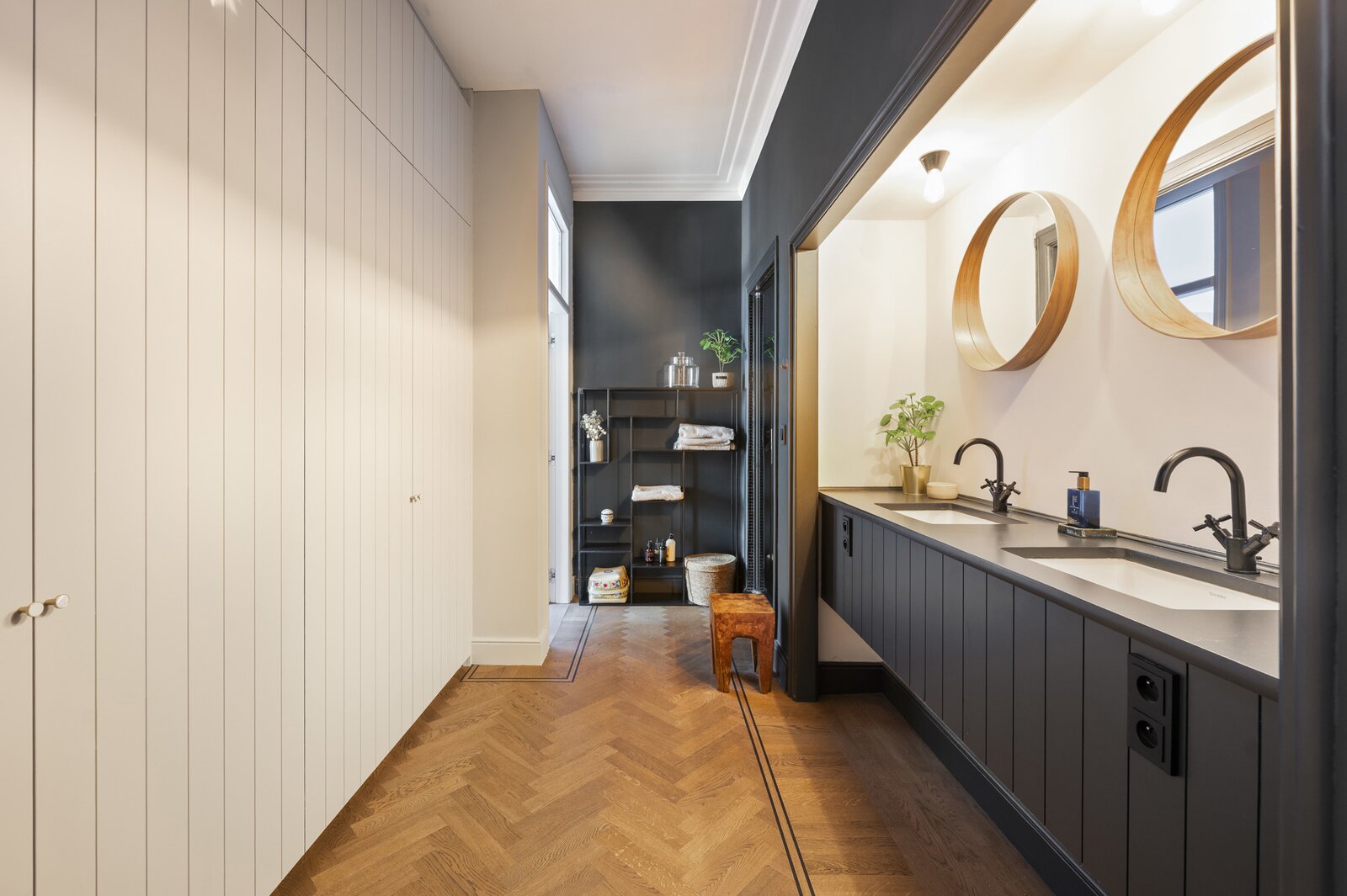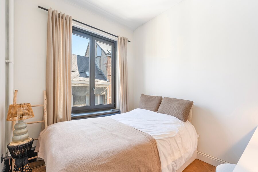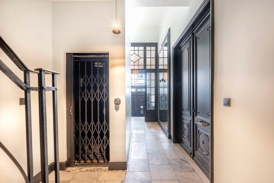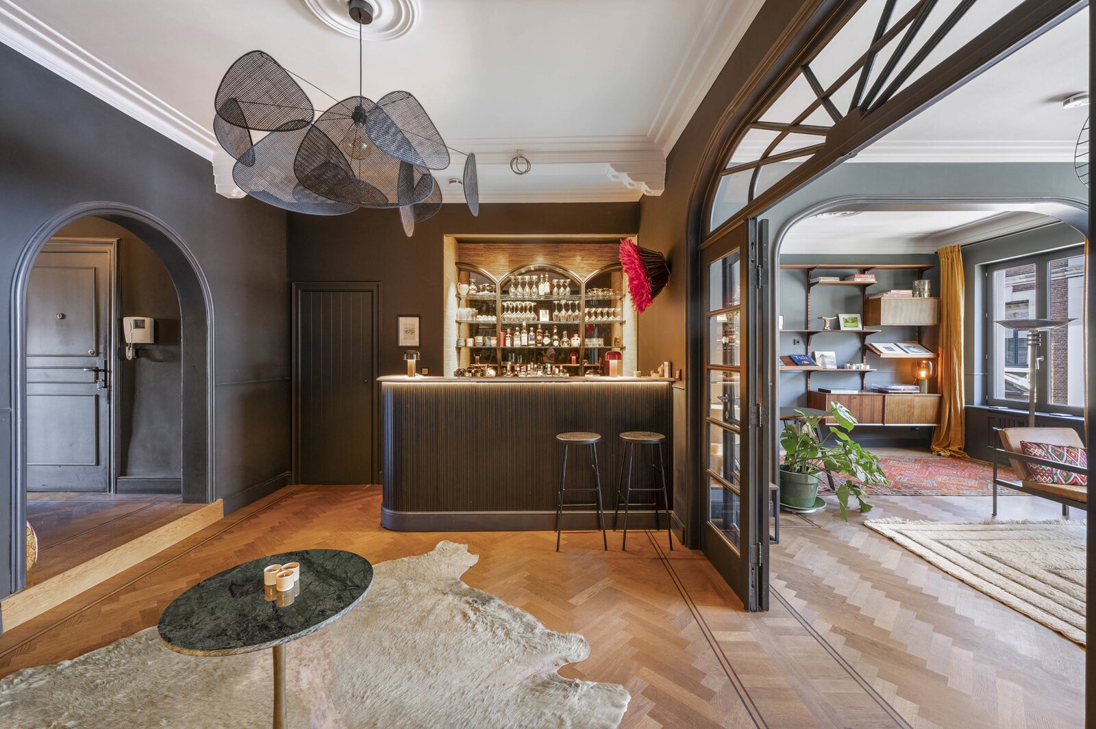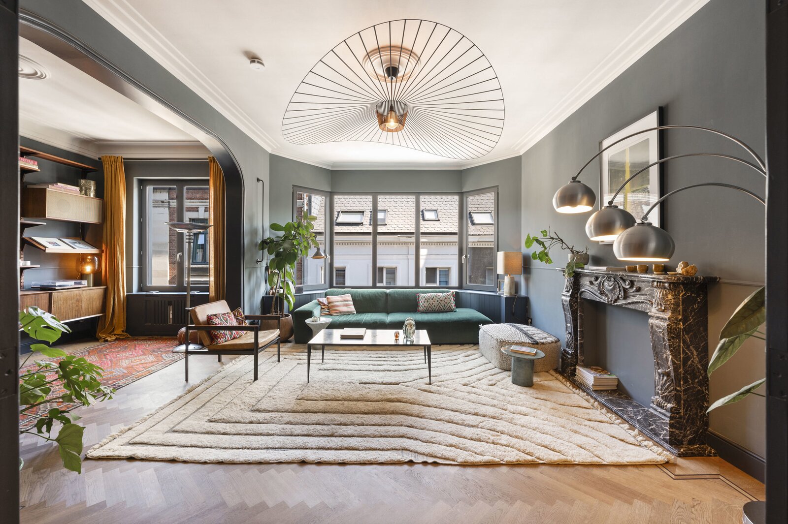 In 2023 werd het appartement zelf nog verfijnd gerestyled door de eigenaars, met oog voor detail en gebruik van hoogwaardige materialen – alles is tot in de puntjes afgewerkt. Het appartement beslaat de volledige verdieping, wat zorgt voor maximale privacy. Een royale inkomhal met op maat gemaakte bar verwelkomt u in een warme, uitnodigende sfeer. De leefruimtes zijn afgewerkt met klassieke visgraatparket, en aan de voorzijde bevindt zich een lichte woonkamer met grote raampartijen en een fraaie gevelbreedte.