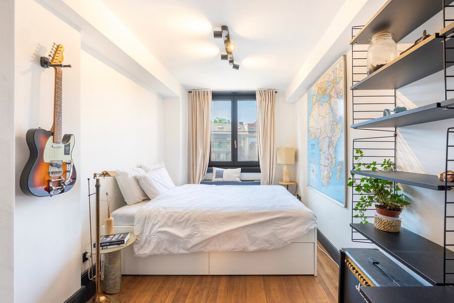 Met maar liefst vier slaapkamers is dit appartement uitzonderlijk flexibel: ideaal voor een gezin, thuiswerkers of wie graag gasten ontvangt. Denk aan een tv-kamer, hobbyruimte of thuiskantoor – alles is mogelijk. Twee slaapkamers bevinden zich aan de voorzijde, met daartussen een stijlvolle badkamer voorzien van een inloopdouche, ingemaakte kasten en een aparte toilet dat tevens dienstdoet als gastentoilet.
