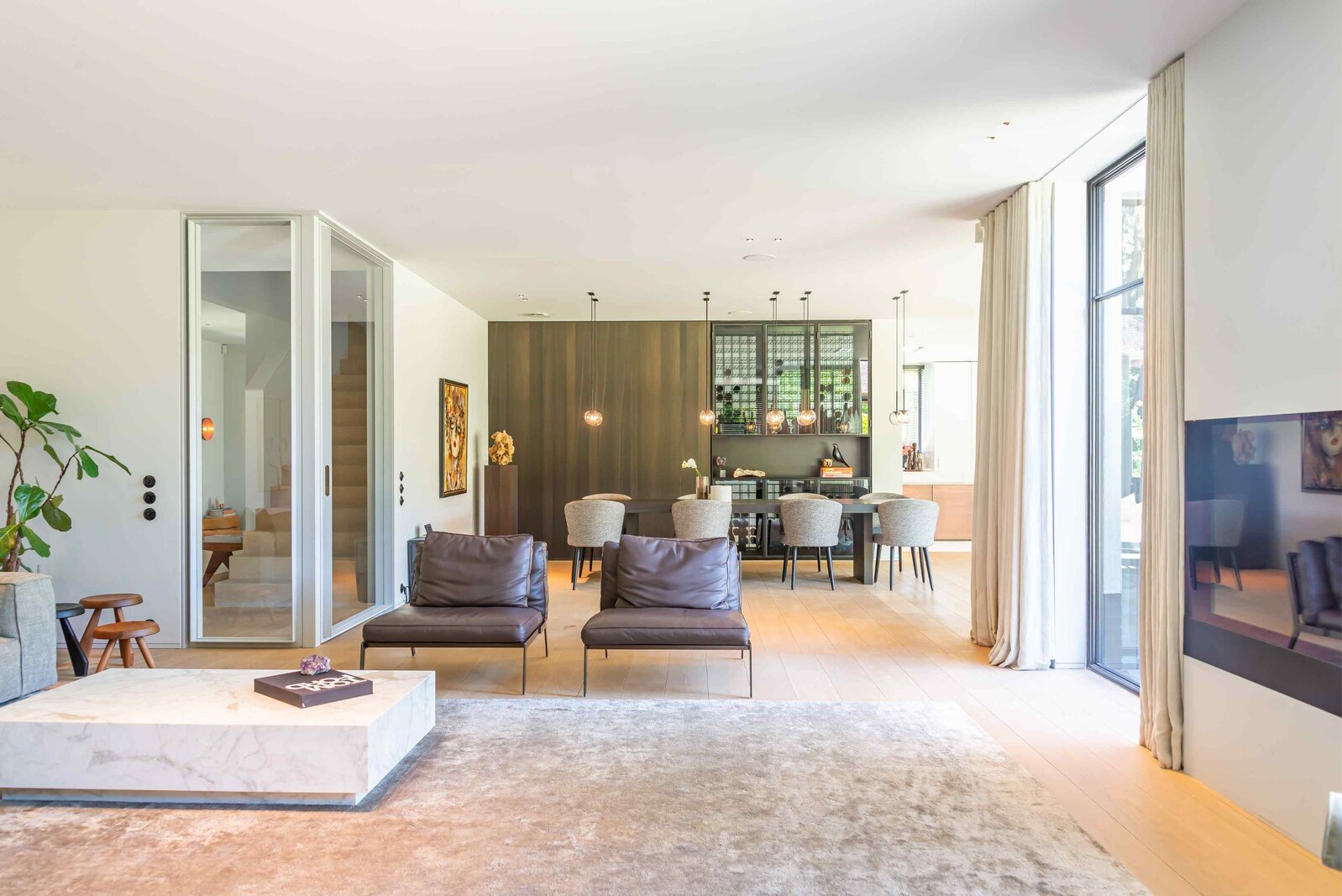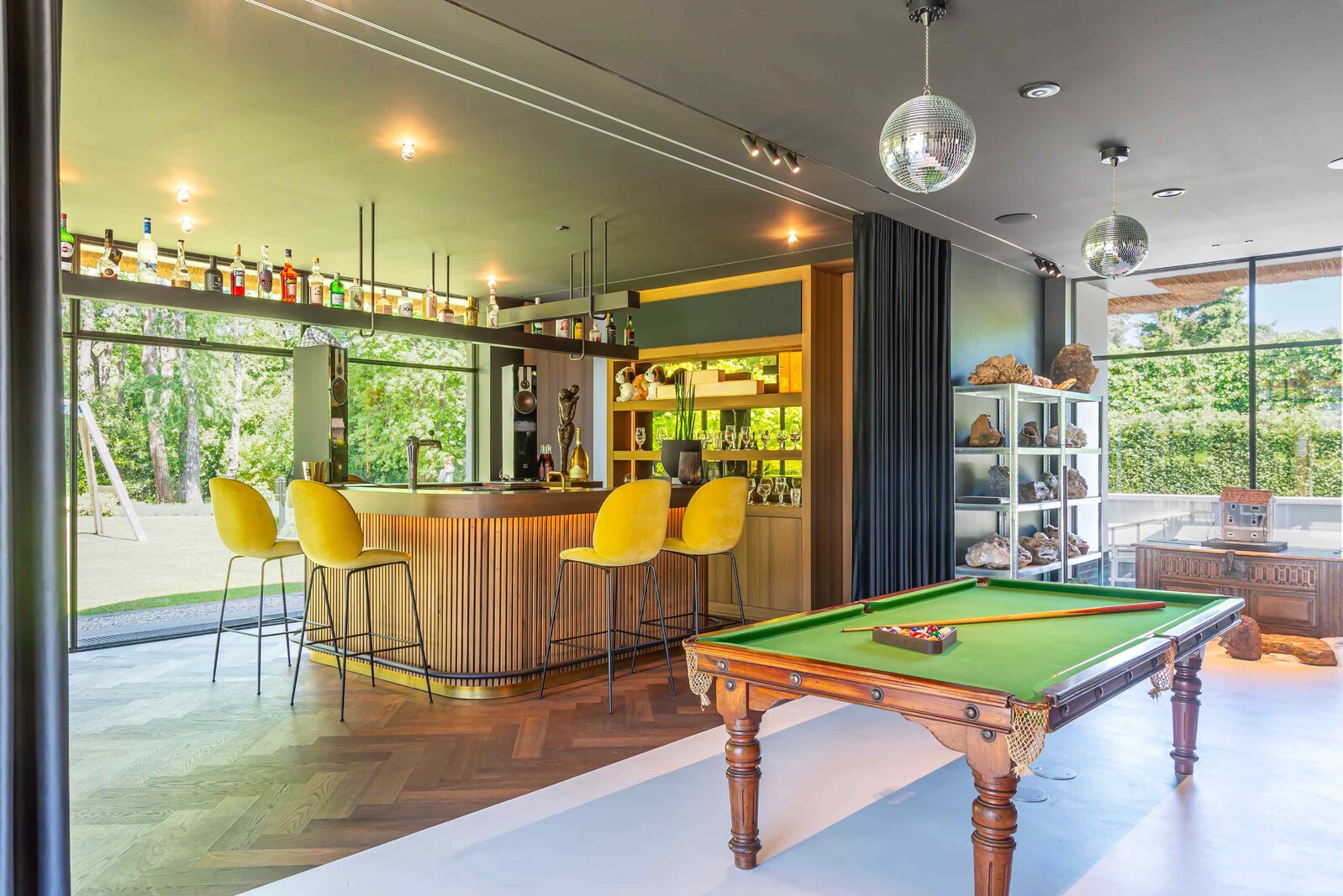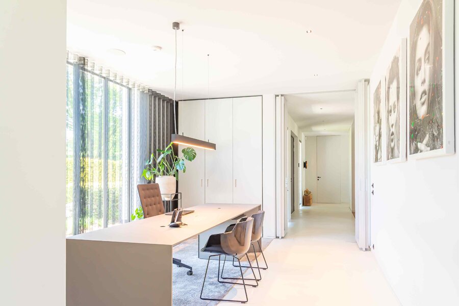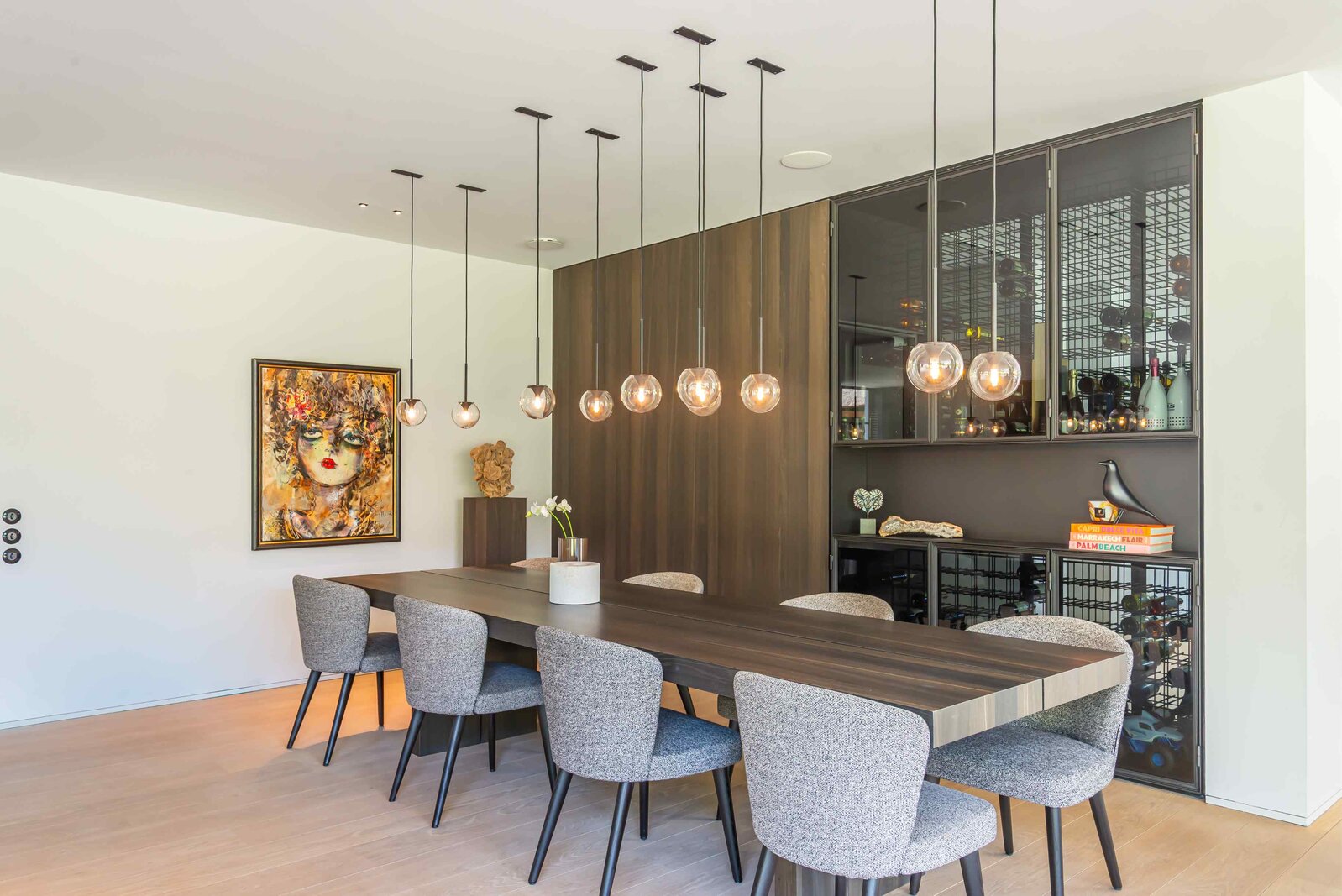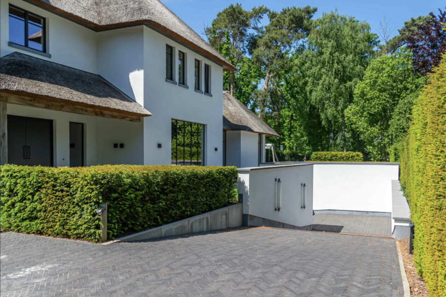 De moderne stijl van de woning is gecombineerd met warme accenten, heeft een zeer hoogwaardige afwerking, en biedt veel lichtinval door de grote raampartijen. De villa van ca. 1060 m2 bewoonbare oppervlakte en een perceel van 42 are dateert uit 2020. De woning beschikt over vier verdiepingen met een royale living, eetkamer, open keuken, kantoor, bar ruimte met ensuite badkamer, vier slaapkamers met een en-suite badkamer en dressing in de master-bedroom, een tweede badkamer voor de overige kamers, zeer ruime zolder, kelder met voldoende opslagruimte, fitnessruimte met sauna en badkamer en een garage voor maar liefst 4 wagens.