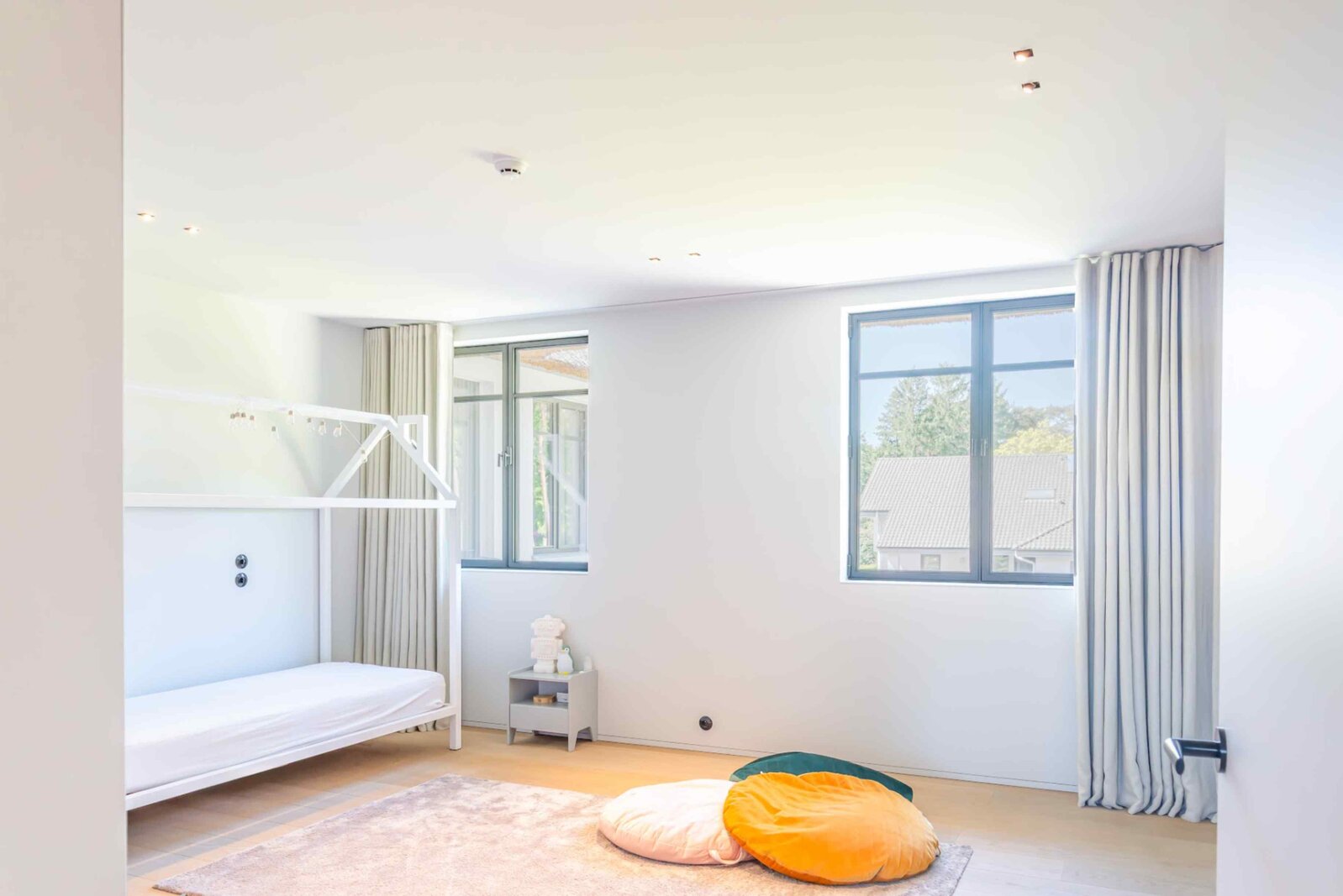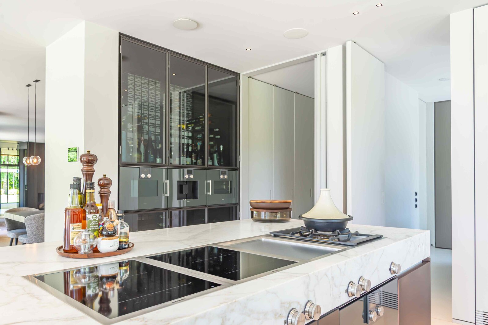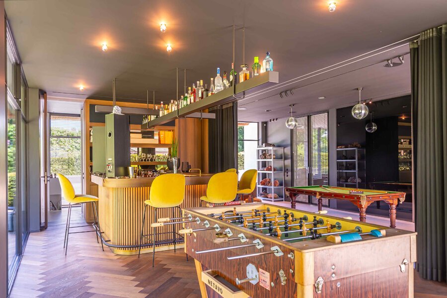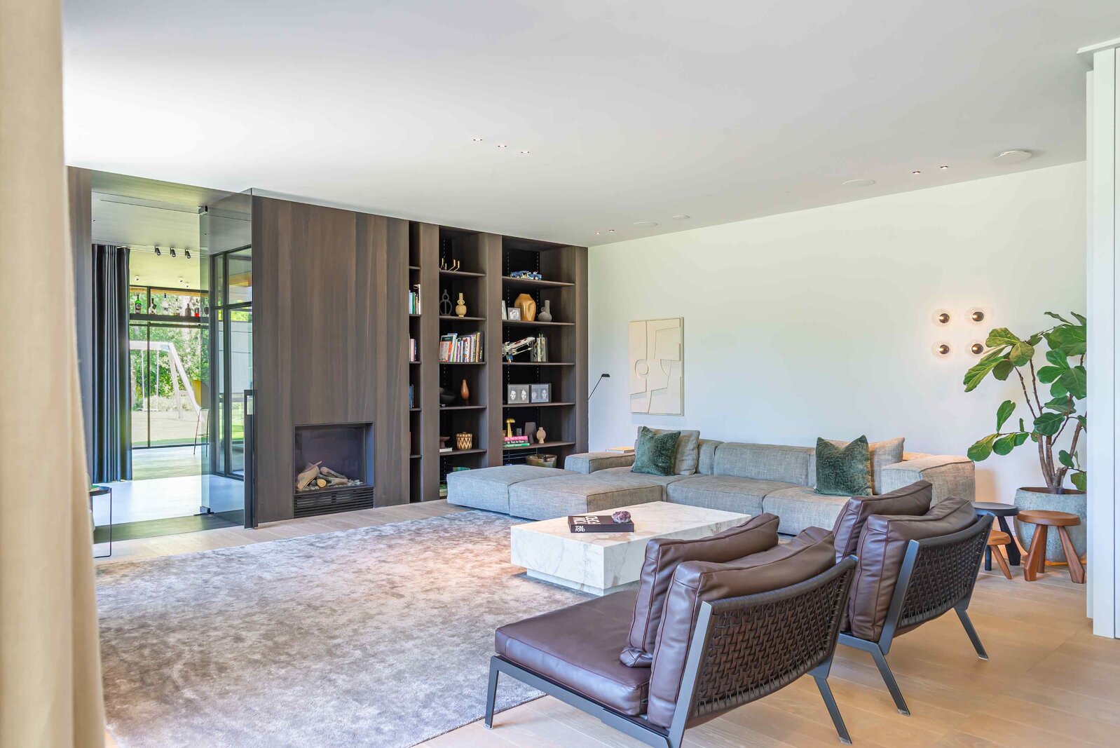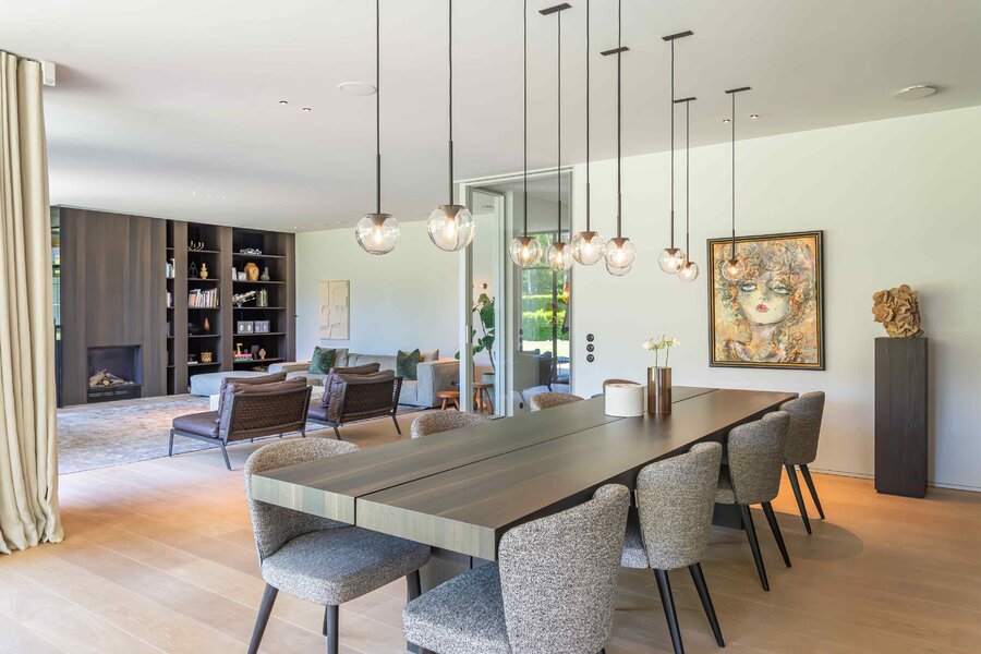 De moderne stijl van de woning is gecombineerd met warme accenten, heeft een zeer hoogwaardige afwerking, en biedt veel lichtinval door de grote raampartijen. De villa van ca. 1060 m2 bewoonbare oppervlakte en een perceel van 42 are dateert uit 2020. De woning beschikt over vier verdiepingen met een royale living, eetkamer, open keuken, kantoor, bar ruimte met ensuite badkamer, vier slaapkamers met een en-suite badkamer en dressing in de master-bedroom, een tweede badkamer voor de overige kamers, zeer ruime zolder, kelder met voldoende opslagruimte, fitnessruimte met sauna en badkamer en een garage voor maar liefst 4 wagens.