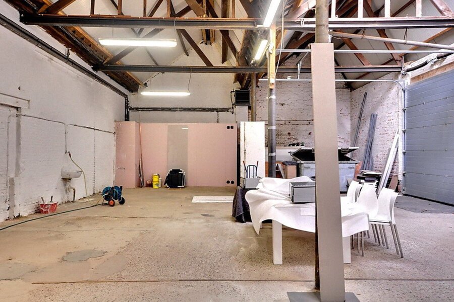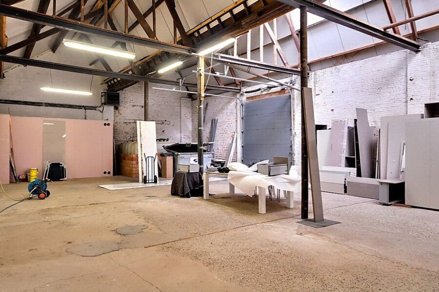 Loods (783 m²): toegankelijk via hoge poorten (>3,40 m), geschikt voor opslag, atelier, voertuigen…