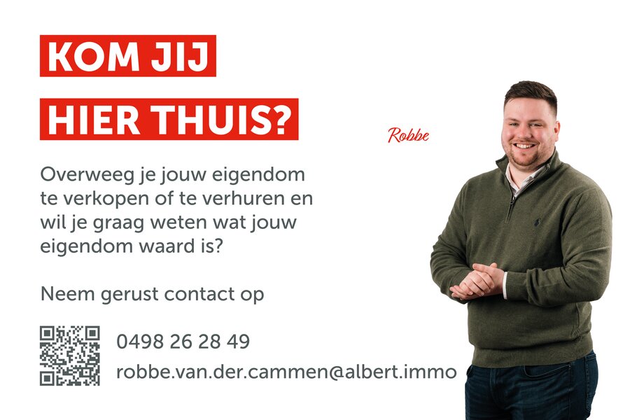 Wens je meer informatie over dit unieke pand of graag een bezoek inplannen? Contacteer dan Robbe Van der Cammen via 0498 26 28 49 of robbe.vandercammen@albert.immo of bezoek onze website albert.immo.