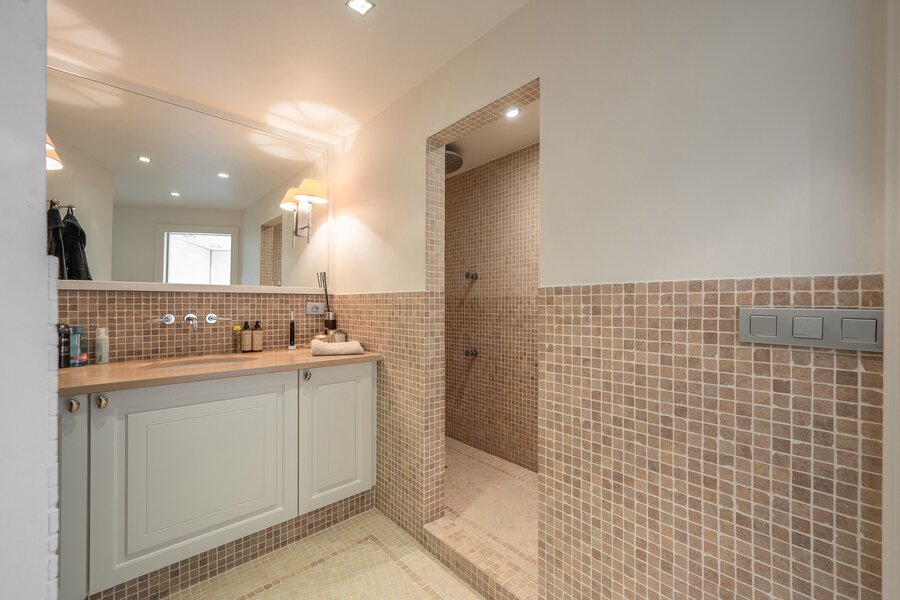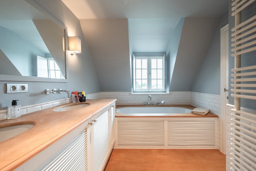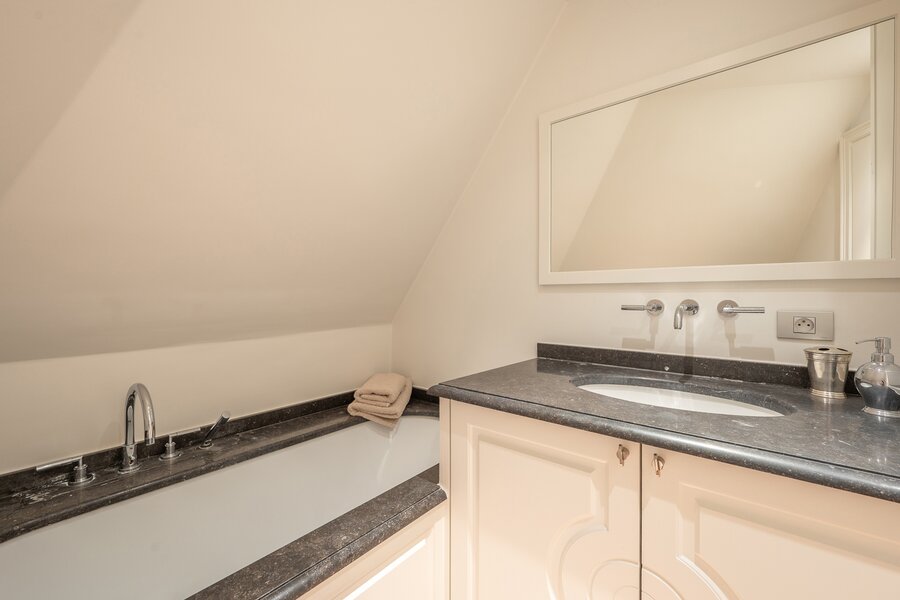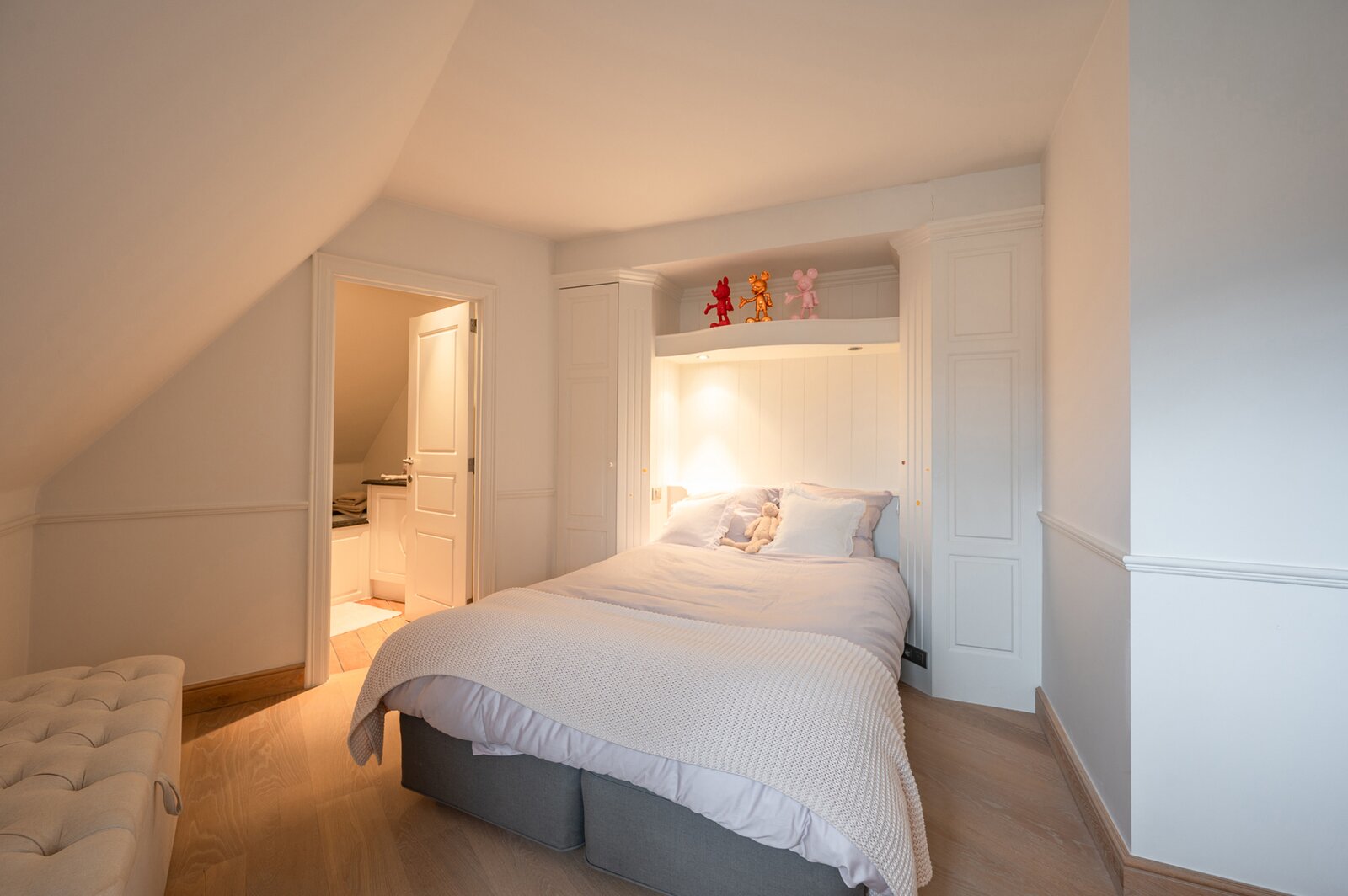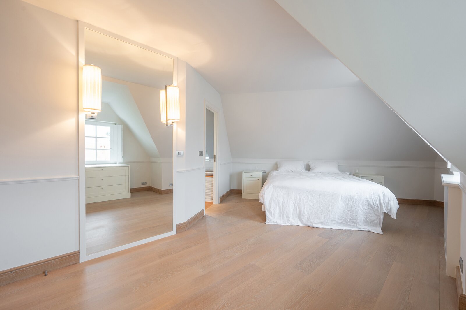 Op de bovenverdieping bevinden zich 2 royale slaapkamers, elk voorzien van talrijke ingemaakte kasten en een eigen badkamer – ideaal voor familie of gasten.