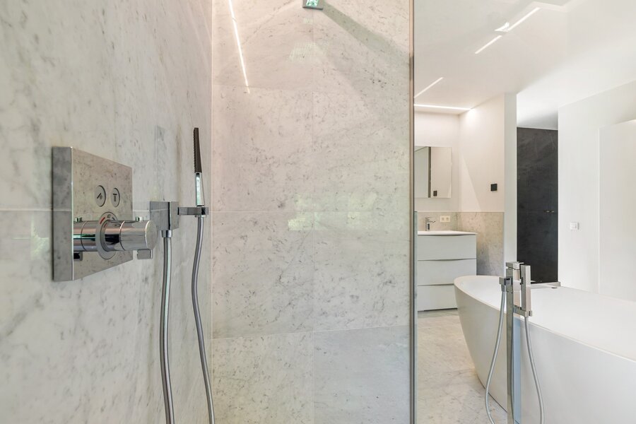 Hier beneden werd alsook een ruime badkamer en kleedruimte voorzien.