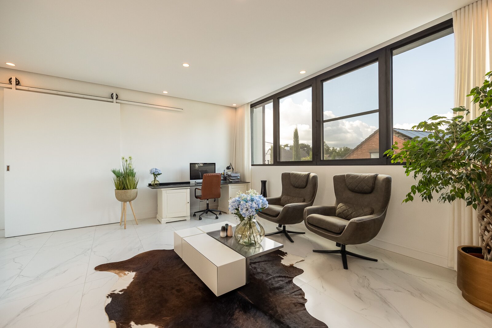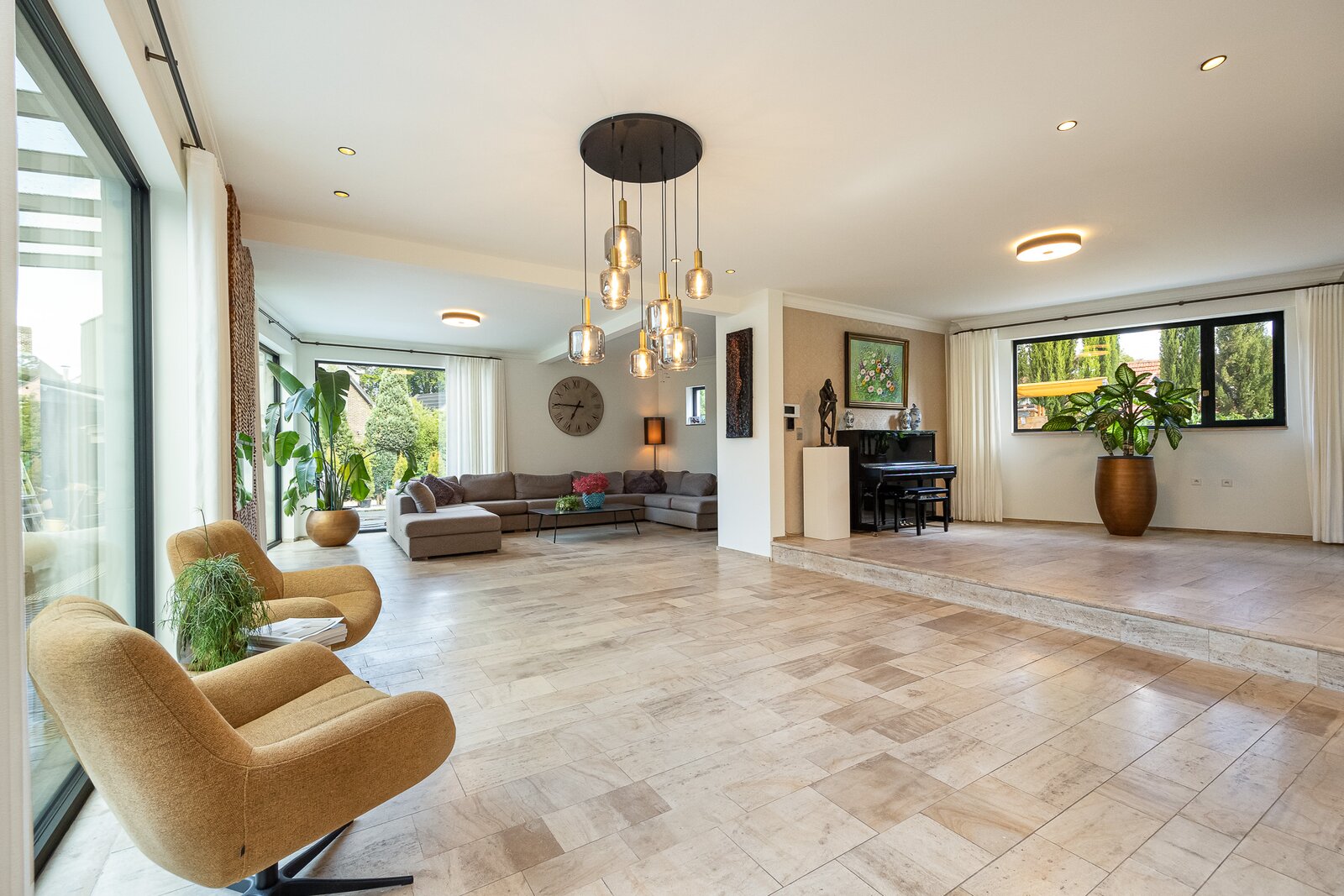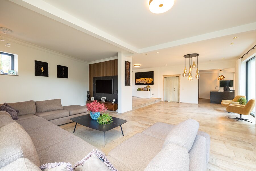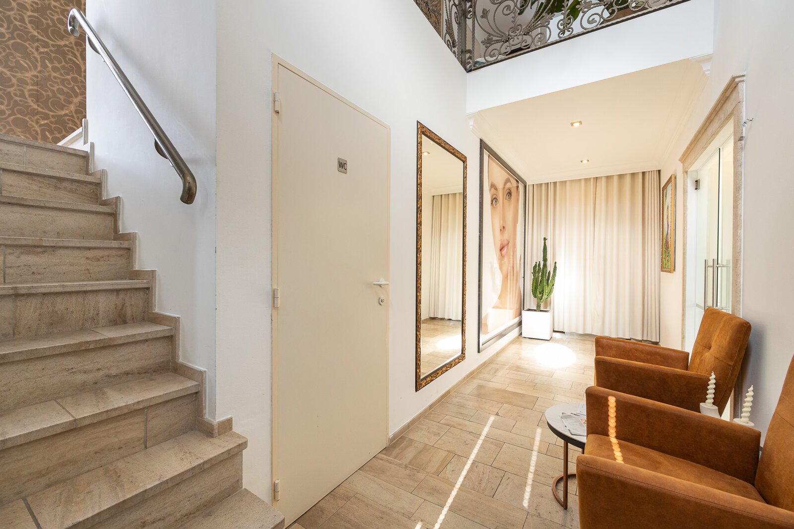 U treedt binnen via de inkomhal waar u het gastentoilet aantreft en rechts naar de polyvalente ruimte begeeft. (Momenteel ingericht als schoonheidssalon maar kan ook ingevuld worden als andere praktijkruimte, kantoor, enz...). Voorts komt u in de living met ruime zit hoek en eethoek. De grote raampartijen zorgen voor zeer veel lichtinval. Aansluitend is de open keuken welke uitgerust is met alle luxe apparatuur.