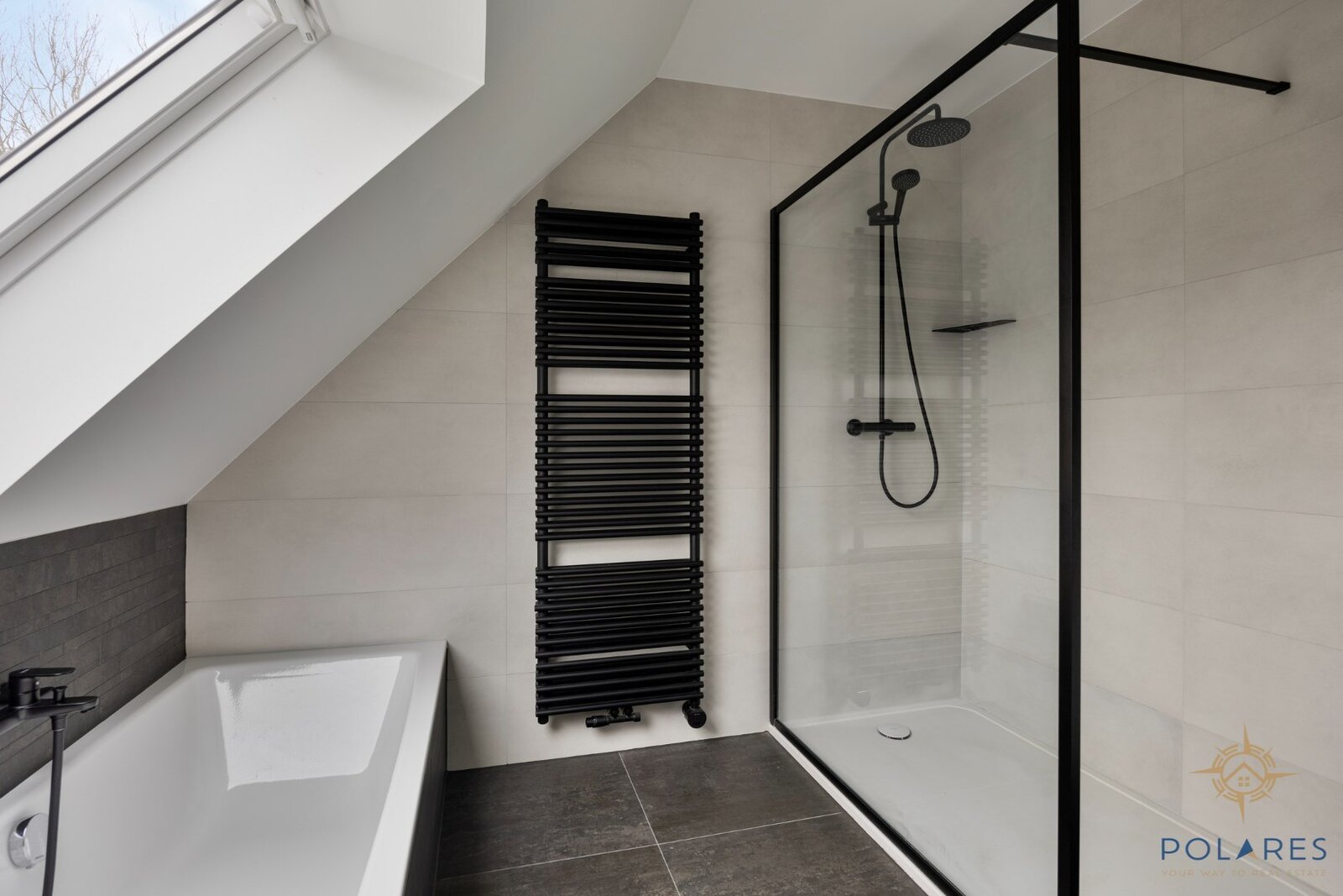Eerste verdieping: nachthal, 3 ruime slaapkamers, bureau, badkamer met inloopdouche, ligbad, dubbele lavabo en toilet.