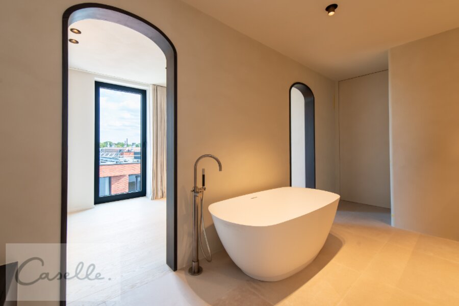 Het penthouse is volledig geschilderd en onmiddellijk instapklaar, inclusief domotica van Duo Techno met luxe armaturen van Prado en stijlvolle gordijnen.