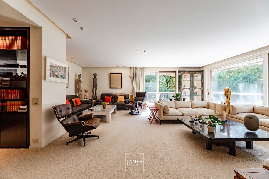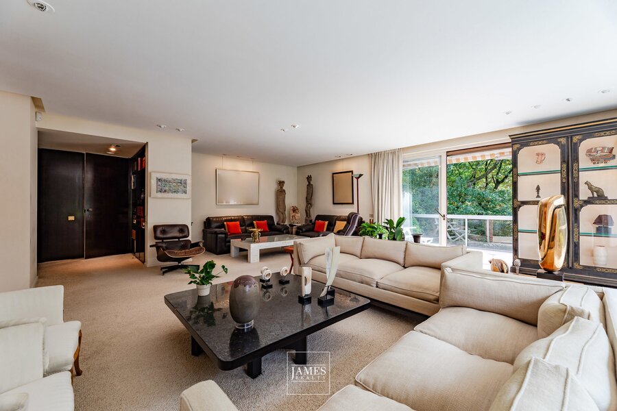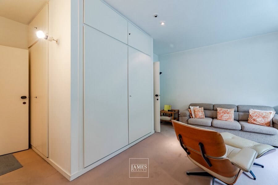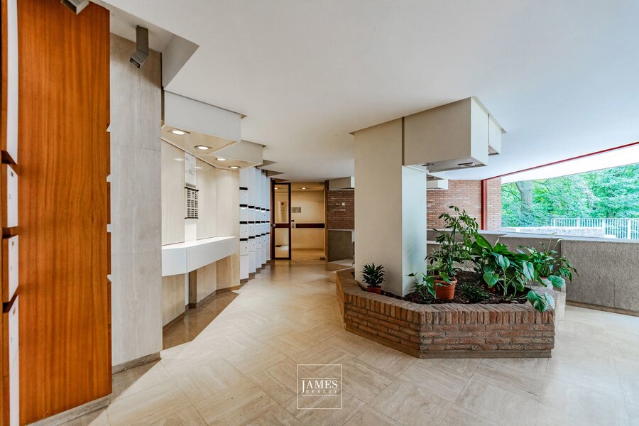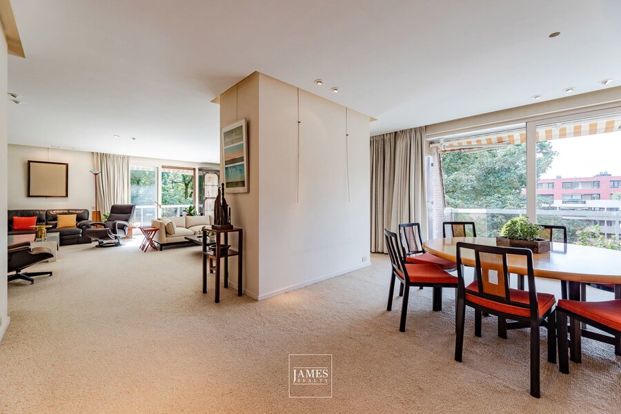 Gelegen aan de zeer gewilde Avenue de Messidor, in een klassiek gebouw op een hoge verdieping, biedt dit karaktervolle appartement van ongeveer ±282m² een interieurontwerp van Marc Corbiau uit 1976. Het appartement is volledig in zijn originele staat bewaard gebleven en behoudt alle kenmerkende elementen van die tijd — Jules Wabbes deurklinken, houtwerk op maat en architectonische afwerkingen — die getuigen van de zorg en coherentie van het werk van de architect.