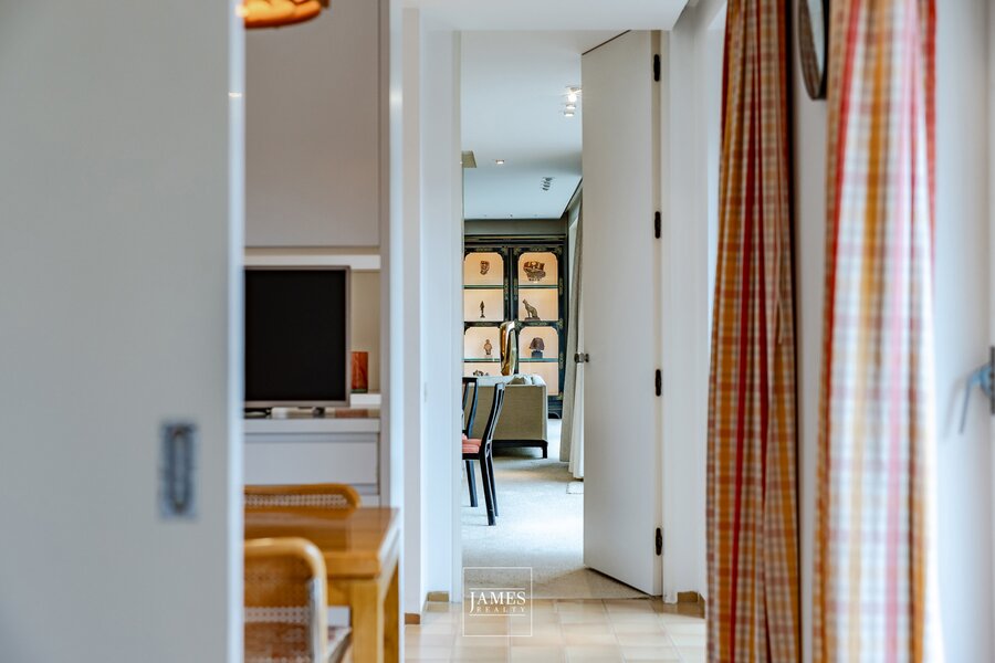 Het appartement verkeert in uitstekende staat, maar vraagt om een technische en esthetische renovatie die zijn oorspronkelijke architecturale stijl uit de jaren 70 volledig tot zijn recht brengt.