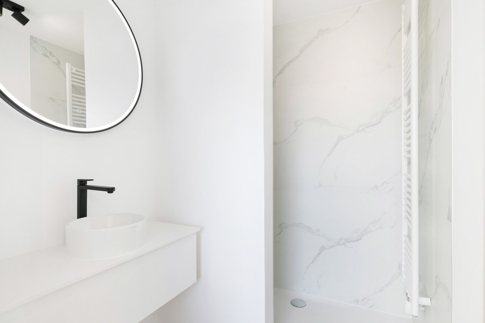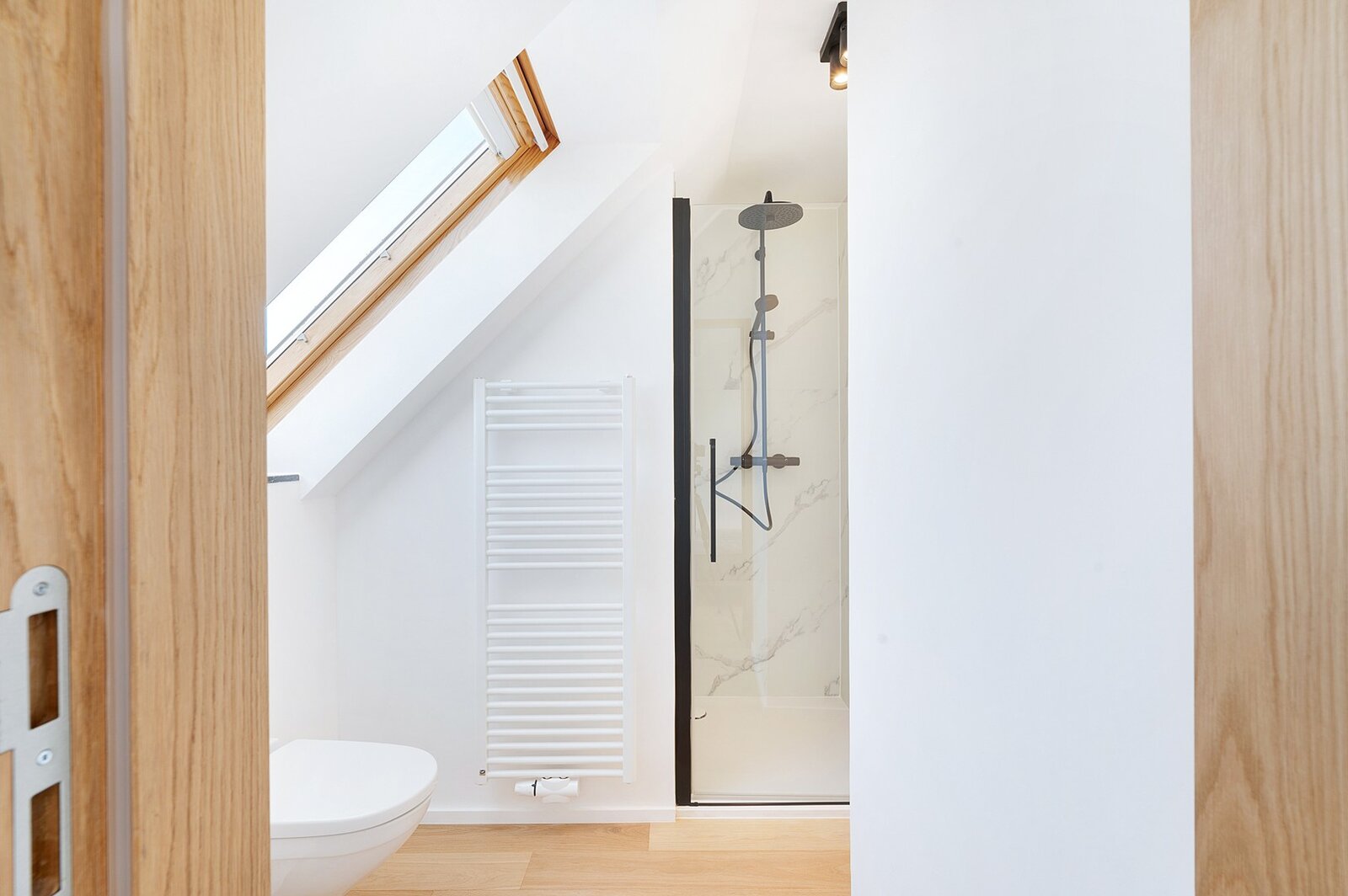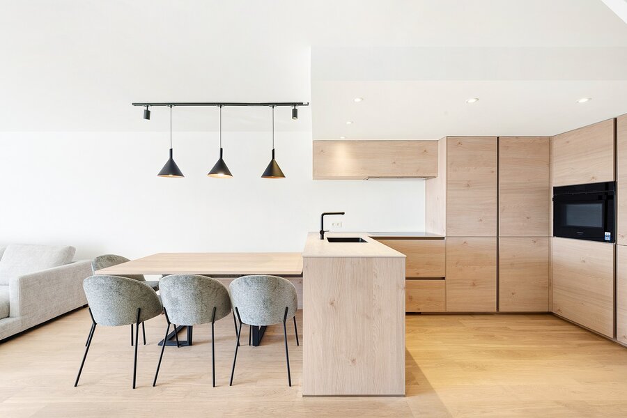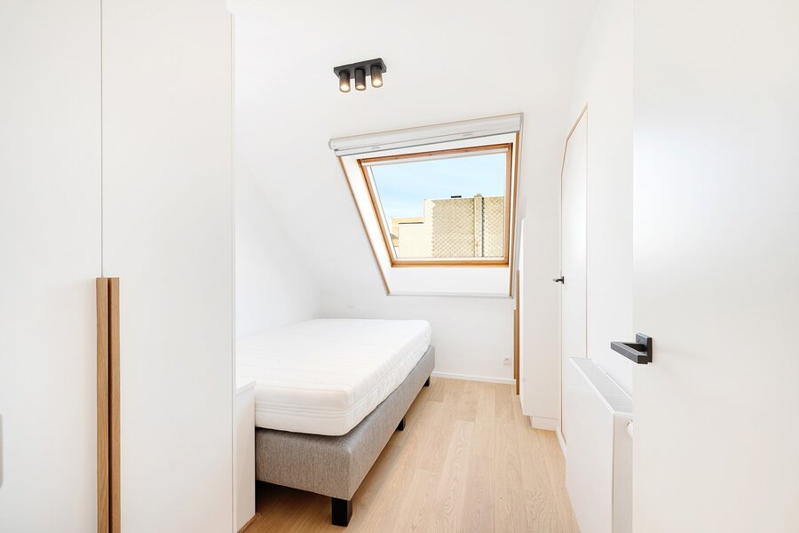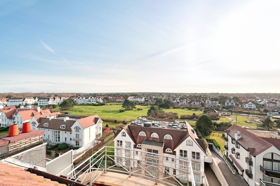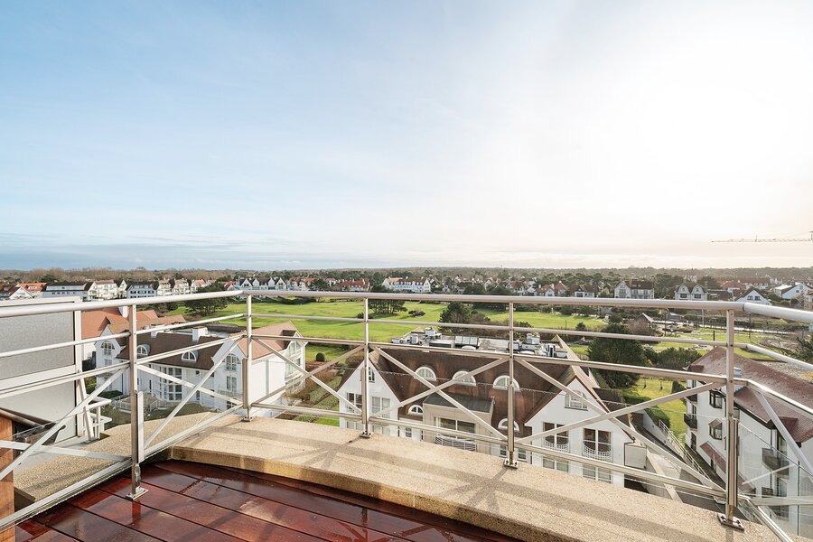 Dit prachtig gerenoveerde penthouse bevindt zich op de prestigieuze Kustlaan en combineert luxueus wooncomfort met een adembenemend uitzicht over Het Zoute.Bij binnenkomst wordt de aandacht meteen getrokken naar de lichtrijke leefruimte, waar een open, volledig uitgeruste keuken naadloos aansluit op de woonkamer. De keuken is voorzien van een vaatwasser, een combi-oven en een ruime koelkast met vriesvak. Dankzij de grote raampartijen geniet de woonkamer van een overvloed aan natuurlijk licht en een panoramisch uitzicht over de omgeving. Vanuit deze ruimte is er toegang tot het ruime en zonnige terras, dat door zijn optimale oriëntatie de hele dag door van zonlicht profiteert, zowel op het terras zelf als in het appartement.Op de gelijkvloerse verdieping bevinden zich een gastentoilet en een ruime berging. Verder is hier ook een slaapkamer met elektrische rolluiken die de kamer volledig verduisteren. Deze slaapkamer beschikt over een ensuite douchekamer met toilet en een ingebouwde dressing. Vanuit de kamer is er toegang tot een tweede, noordelijk, terras.Op de eerste verdieping bevinden zich twee bijkomende slaapkamers, elk met een eigen ensuite douchekamer en toilet. Eén van de kamers is ruim genoeg voor twee dubbele bedden, wat extra comfort biedt voor gasten of een groter gezin. Op deze verdieping is er ook een extra bergruimte, waar de aansluitingen voor een wasmachine en droogkast reeds geïnstalleerd zijn.Alle slaapkamers zijn uitgerust met ingemaakte kasten, wat zorgt voor extra opbergruimte en een strakke afwerking. Dit penthouse biedt een unieke combinatie van luxe, ruimte en een uitstekende ligging, ideaal voor wie op zoek is naar een uitzonderlijke woonervaring aan de kust. Bovendien is het mogelijk een garage aan te kopen bij dit appartement.
