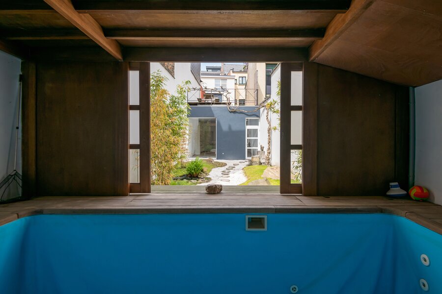 In een rustige en centraal gelegen straat in hartje Antwerpen vinden we dit karaktervolle herenhuis met een bewoonbare oppervlakte van ca. 409 m². De woning combineert ruimte, licht en flexibiliteit, en is ideaal voor wie wonen en werken graag onder één dak brengt. Op het gelijkvloers bevindt zich een ruime, polyvalente ruimte die vroeger gebruikt werd als designstudio. Deze kan perfect dienen als praktijk, kantoor, atelier of showroom, met rechtstreekse toegang vanaf de straat. Op de eerste verdieping ligt de leefruimte, met een mooie parketvloer en veel natuurlijk licht. Aanpalend bevindt zich de open keuken, waar ook een ruim zuidgericht terras te vinden is. Op de tweede verdieping zijn er twee ruime slaapkamers, een grote dressing en twee badkamers. Er is ook mogelijkheid om een derde slaapkamer in te richten. Op de zolderverdieping bevindt zich een extra slaapkamer en een aparte bergruimte. De woning is volledig onderkelderd en biedt veel extra opslagruimte of de mogelijkheid om de werkruimte verder uit te breiden. Achteraan de woning ligt een verrassende Japanse tuin van 86 m², met een compact zwembad. Deze groene buitenruimte zorgt voor rust en privacy, midden in de stad. Bij het pand horen twee overdekte parkeerplaatsen, beschikbaar voor aankoop aan €40.000 per stuk. Er is ook voorziening mogelijk voor laadpalen. Het dak is zuidgeoriënteerd, wat interessant is voor wie zonnepanelen wil plaatsen. Met andere woorden een bijzonder pand met veel mogelijkheden op een sterk gelegen plek in de stad.