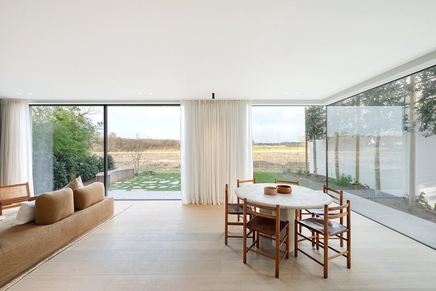 Gelegen aan de rand van het Zoute bevindt zich deze nieuwbouwvilla met unieke zichten en mooie volumes, met een totale oppervlakte van ongeveer 306m², genesteld in een groene omgeving nabij de Oude Kalfsmolen.