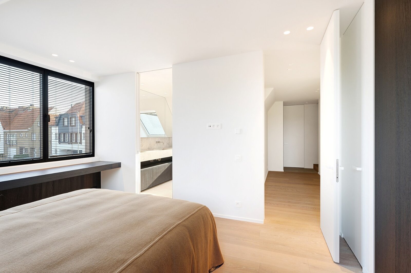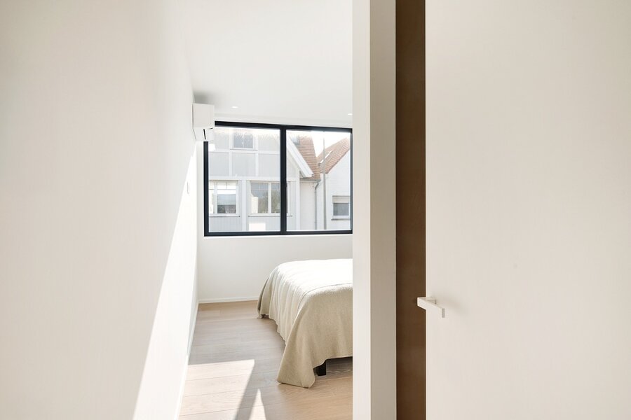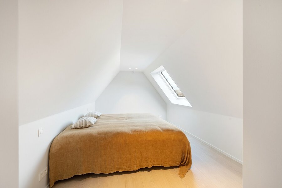 Op de tweede verdieping, met een oppervlakte van ongeveer 40m², bevindt zich een vierde volwaardige slaapkamer met ingemaakte kasten, een douchekamer (lavabo en inloopdouche), en een aparte toilet.