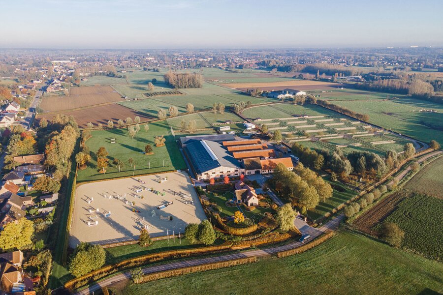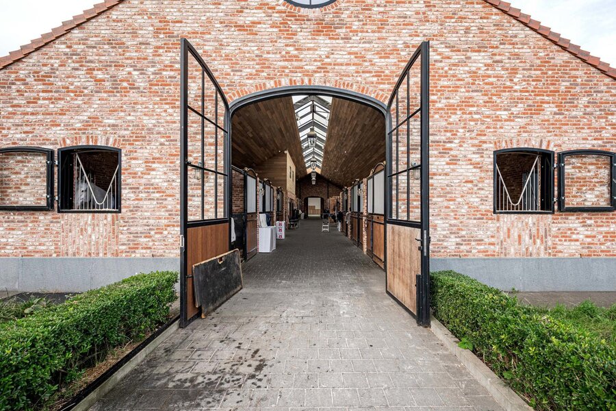 Een professioneel eigendom met luxueuze stallen, ondergebracht in elegant vormgegeven gebouwen, elk voorzien van eigen poetsplaatsen en zadelkamers. Het domein beschikt over uitmuntende binnen- en buitenfaciliteiten, waaronder twee professionele binnenpistes en ruime zand- en graspistes.