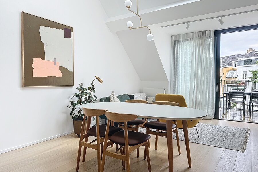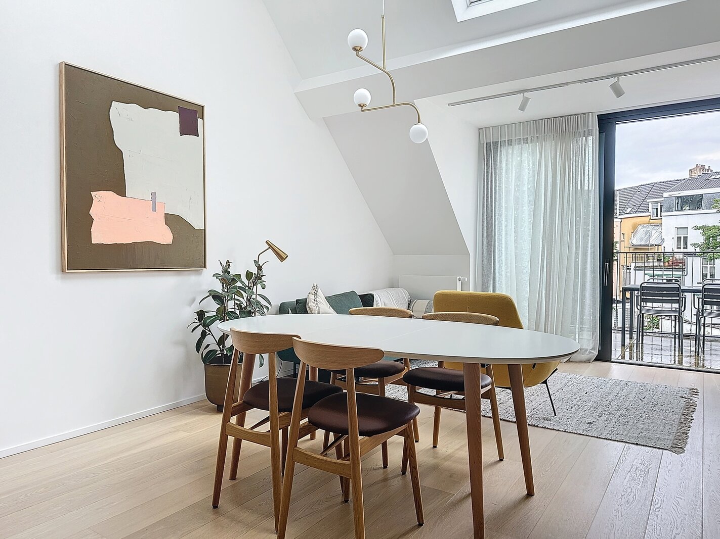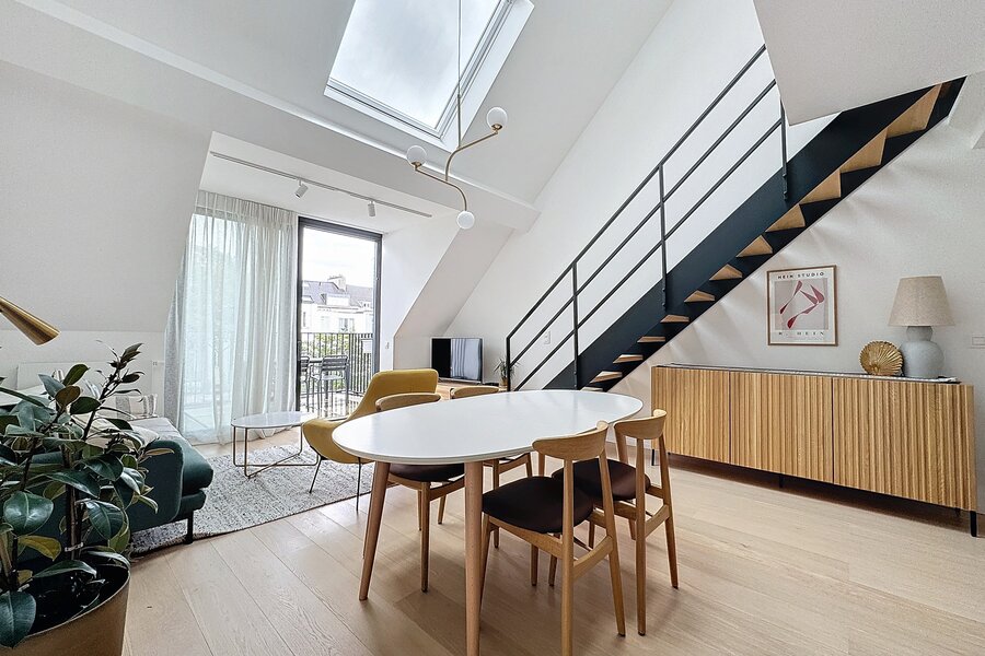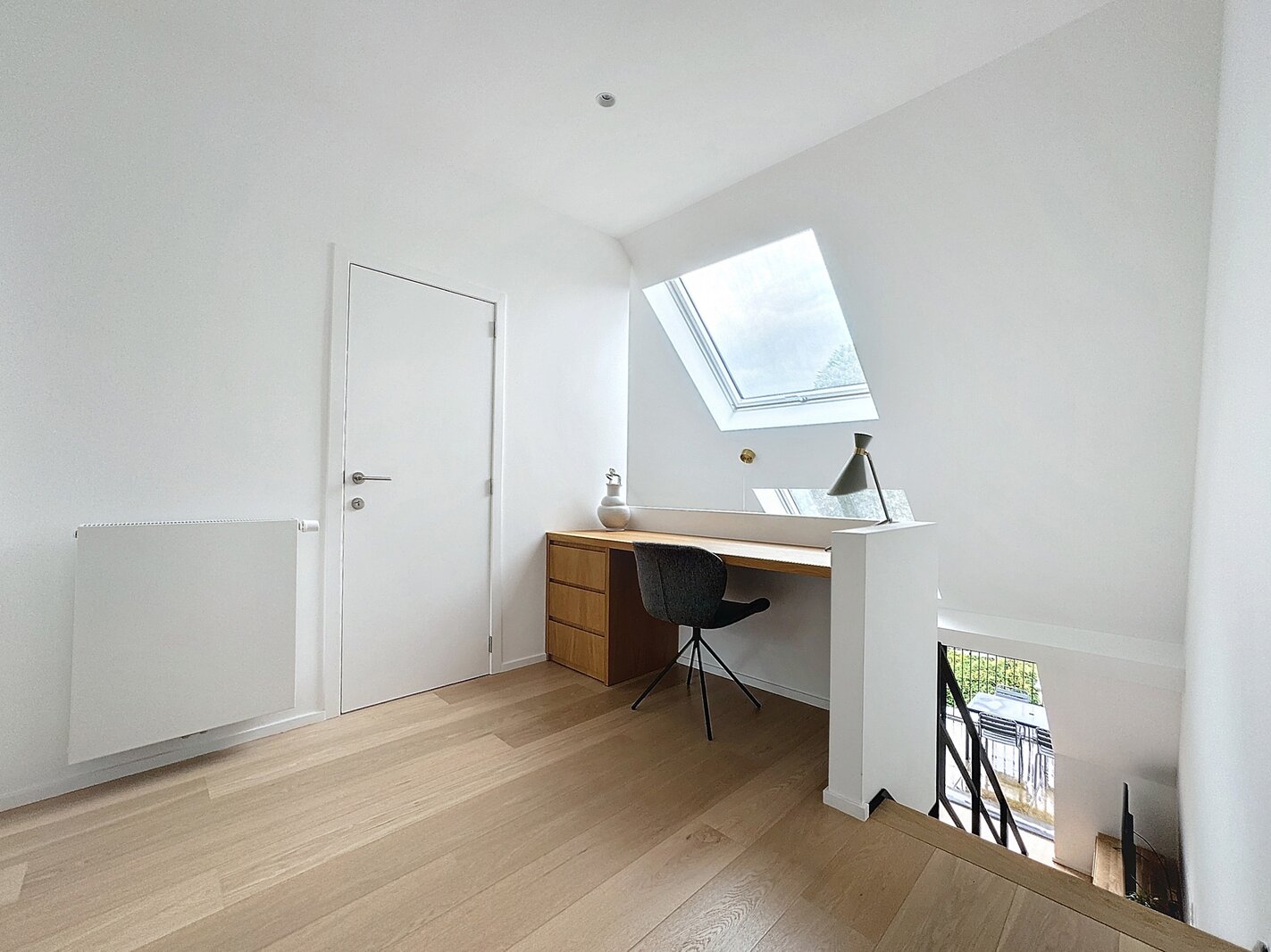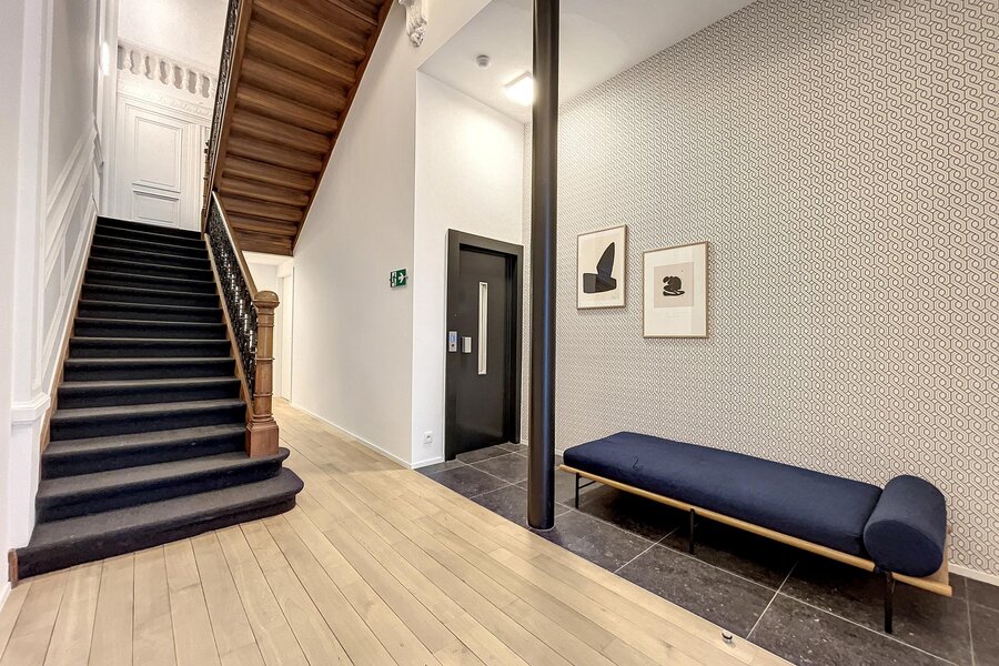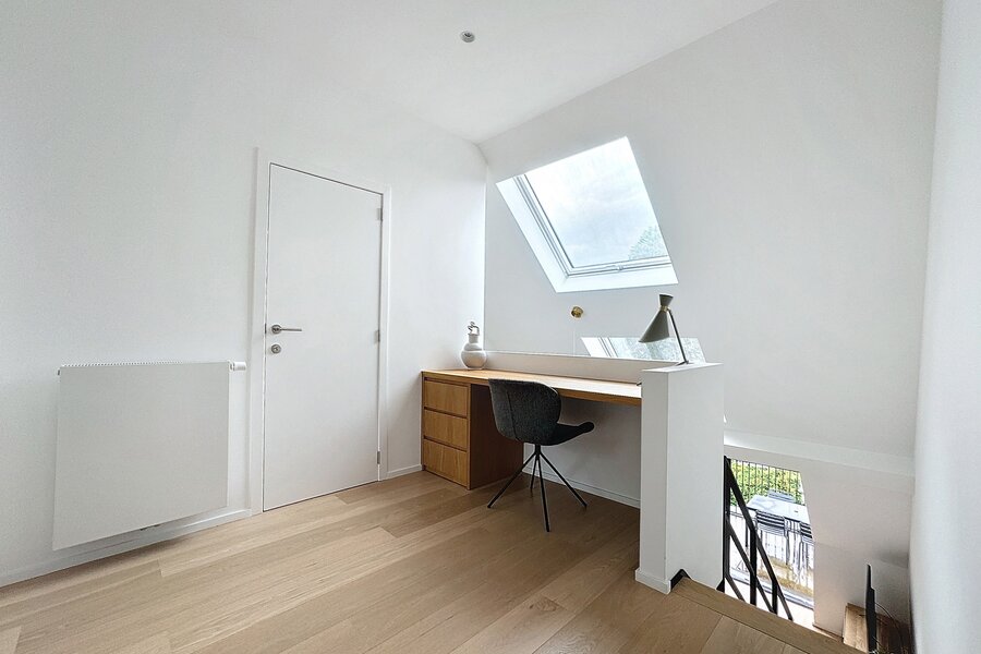 Dit prachtige, gemeubileerde duplexappartement is ideaal gelegen in de Koninklijke Wijk en biedt circa 84 m² woonruimte op de derde en bovenste verdieping van een prestigieus gebouw met lift. Het appartement bestaat uit een entreehal met garderobe en apart toilet, een ruime woonkamer (circa 35 m²), een volledig uitgeruste open keuken, twee mooie slaapkamers (circa 15 m² en 10 m²), een sfeervol kantoor, een badkamer met douche, een wasruimte en een apart toilet. Vanuit de woonkamer is er toegang tot een fraai terras (circa 6 m²). Een kelder is inbegrepen en een parkeerplaats is te huur. Het appartement is voorzien van hoogwaardige materialen, dubbele beglazing, hoge plafonds en parketvloeren. Een bedrijfslease is mogelijk. Maandelijkse servicekosten: € 100 (voor onderhoud van gemeenschappelijke ruimtes, cv-ketel en verzekering). Energielabel (EPC): C. Mis deze kans niet! Neem vandaag nog contact op met Vaneau Lecobel!