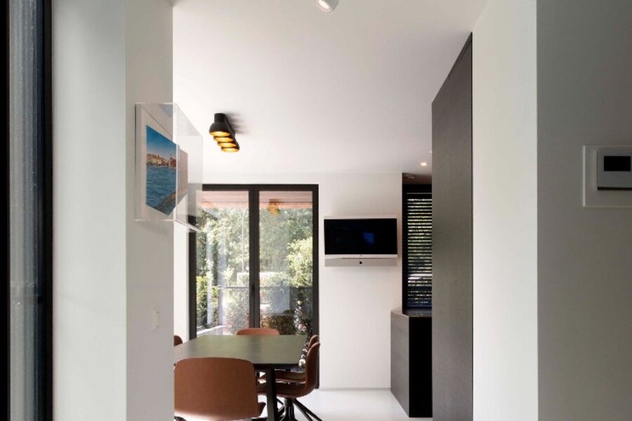 Indeling: inkomhal met gastentoilet en vestiaire, berging met aansluiting voor wasmachine/droogkast. Open keuken, uitgerust met hoogwaardige apparatuur en wijnfrigo, grenst aan een gezellige eethoek. Lichtrijke woonkamer met zicht op het terras(voorzien van terrasverwarming) en de tuin met prachtig uitzicht over de polders.