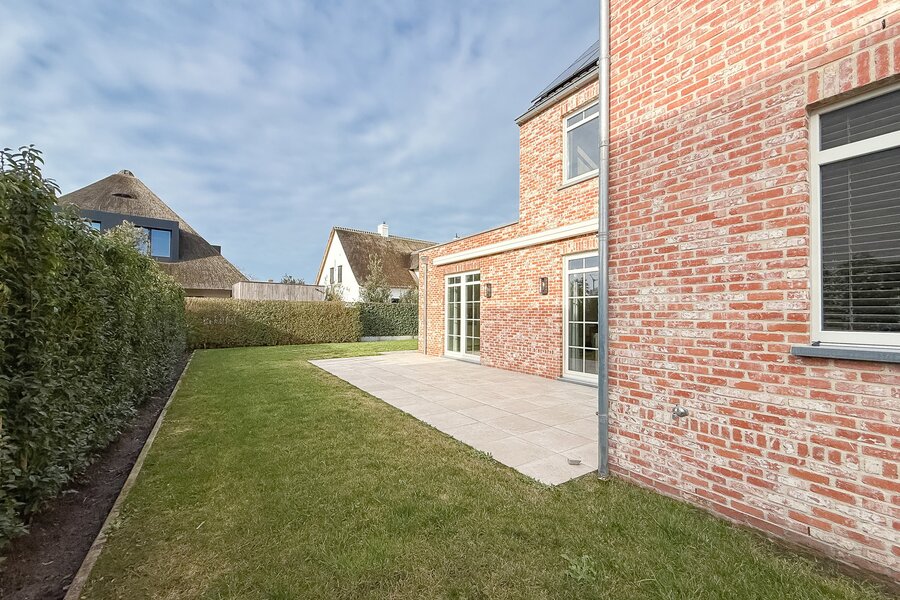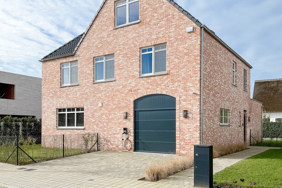 De woning is omgeven door een mooi aangelegde tuin met een zonnig, westgericht terras. Op het eigen perceel bevinden zich een garage en twee privatieve parkeerplaatsen. Een laadpunt voor elektrische wagens is reeds voorzien.