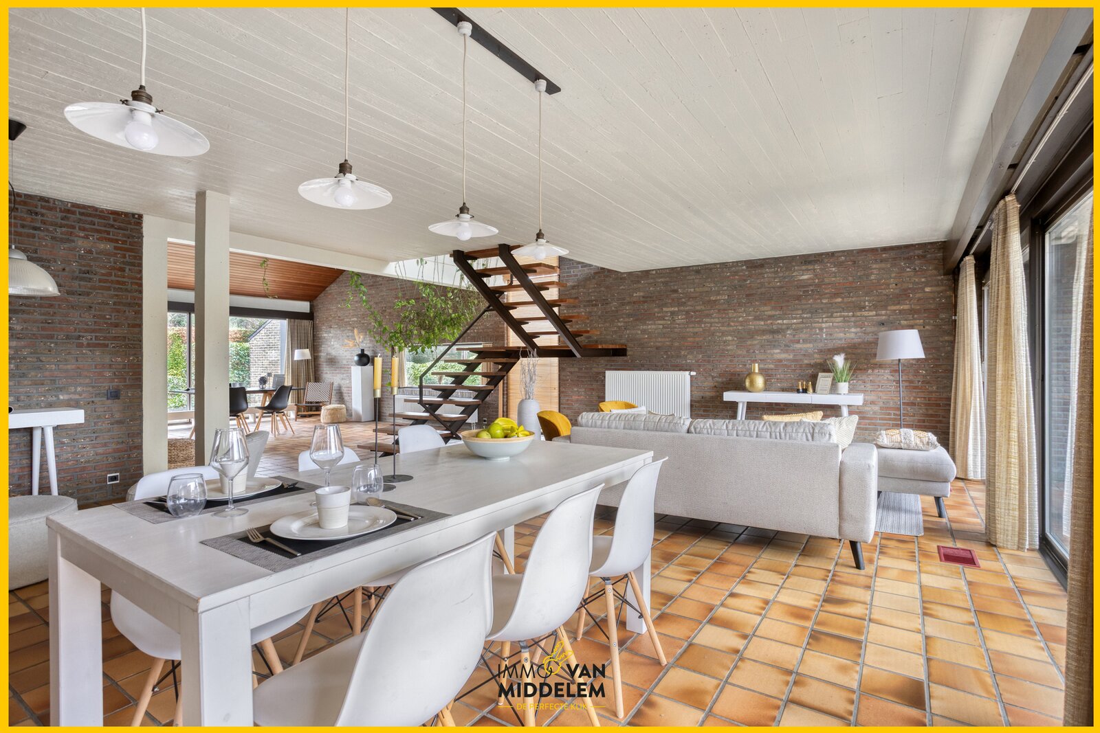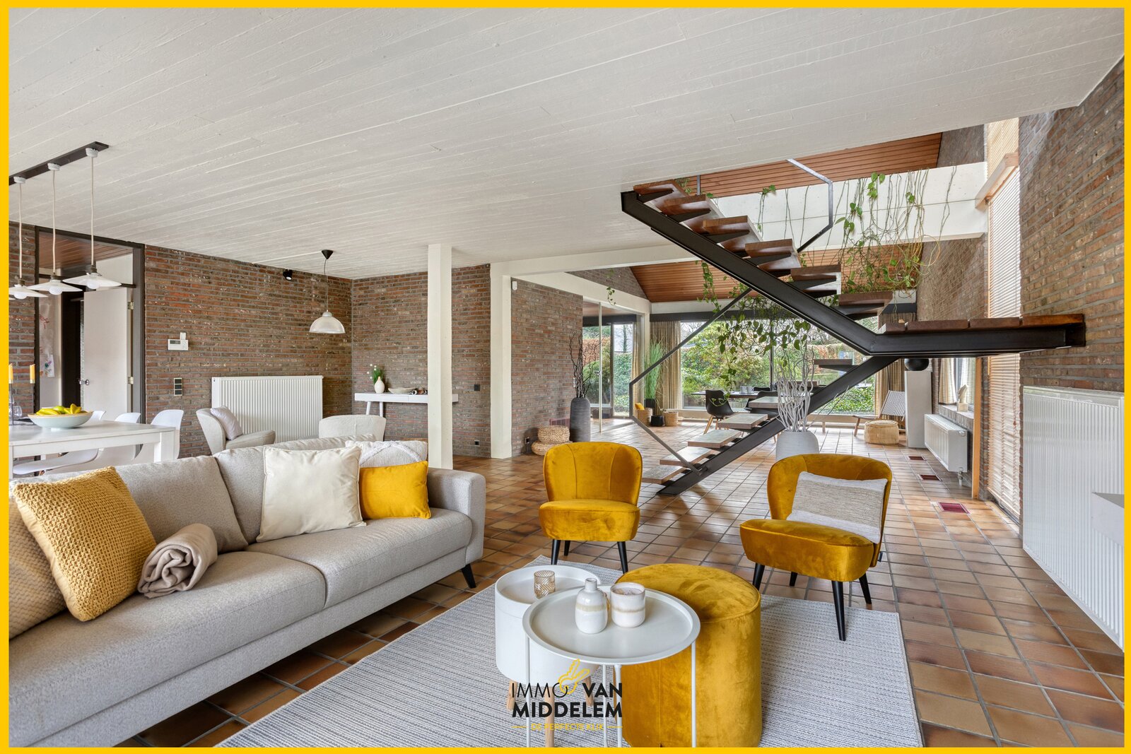 Deze woning valt op door haar open leefruimtes en indrukwekkende vide en bijhorende haardhoek. Grote raampartijen zorgen voor een aangename lichtinval en een sterke verbinding met de tuin. De woning behoudt haar authentiek karakter dankzij originele materialen en een doordachte indeling. Een bijzonder geheel voor wie houdt van ruimte, licht en tijdloze architectuur.