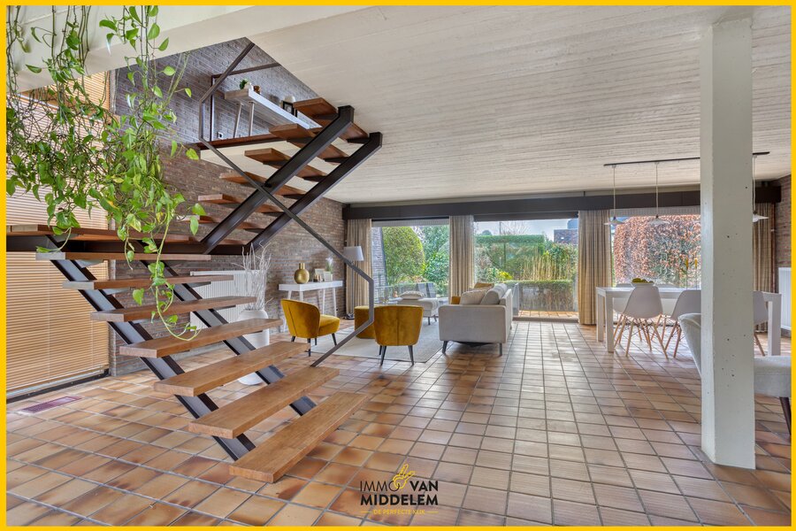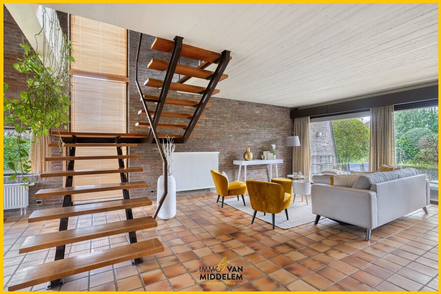 Immo Van Middelem verkoop deze unieke architectenwoning (Architect Jan Van Roy) uit 1975 met 3 kamers en bureau/kinderkamer op een perceel van +/-9a72ca.