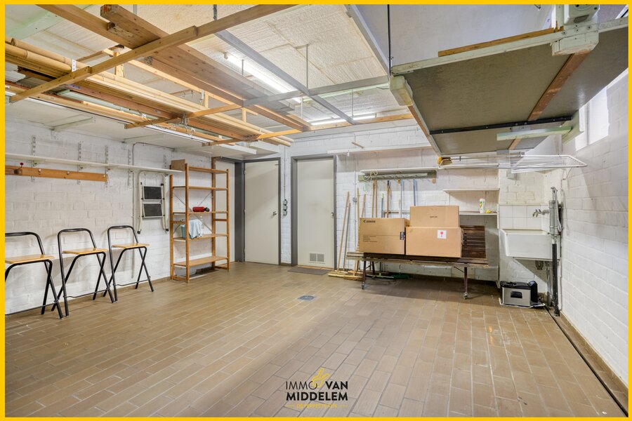 - GELIJKVLOERS: inkomhal met apart WC (geeft ook toegang tot garage), ruime living (+/- 76m²), keuken, berging, garage.