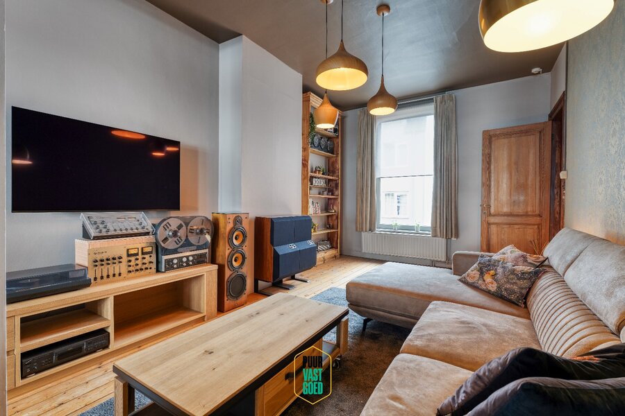 Achter deze discrete gevel uit 1897 schuilt een woning die niet zomaar werd gerenoveerd, maar heruitgevonden. In 2019 onderging dit pand een ingrijpende metamorfose met uitsluitend hoogwaardige materialen, oog voor detail en een zeldzaam gevoel voor sfeer. Het resultaat? Een plek die zo in de boekskes kan — en nog beter in het echt.