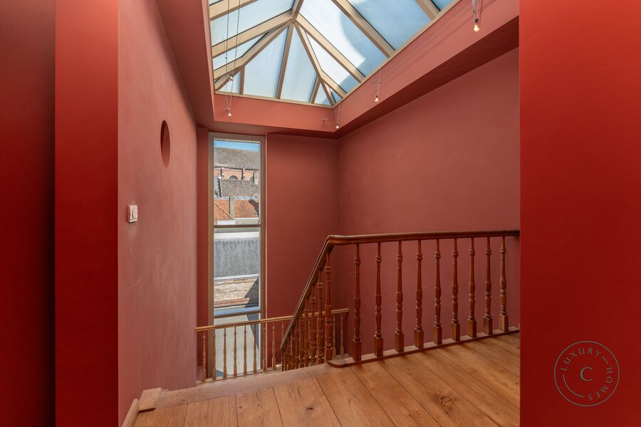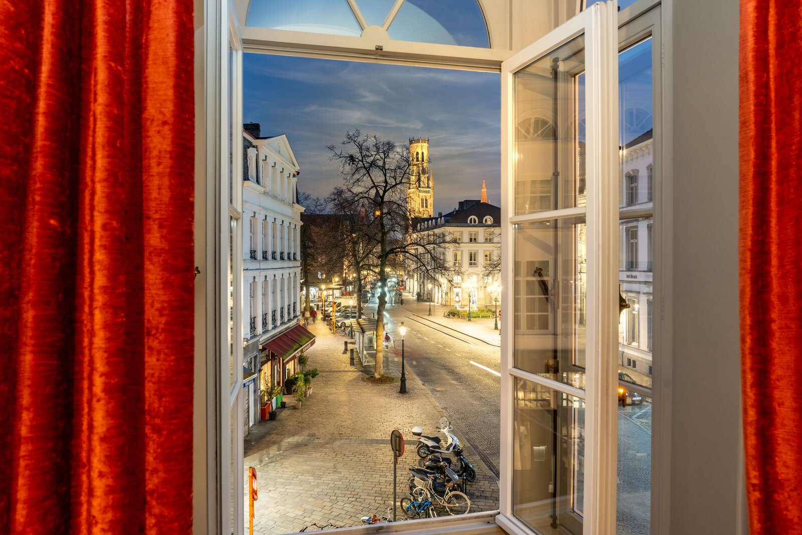 Wat dit eigendom werkelijk uniek maakt, is het panoramisch uitzicht op de Brugse Halletoren, een zeldzaam perspectief dat zich op élk verdiep aandient. Een uitzicht dat nooit verveelt.