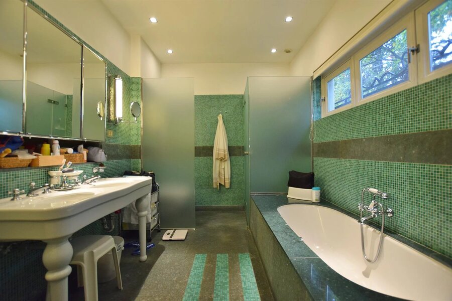 Ontdek deze prachtige 'Art Déco'- woning (bebouwde oppervlakte +- 523 m²) met tuin (Z) ideaal gelegen tussen Montgomery en Vogelzang. Deze woning bestaat uit: aangename leefruimte, uitgeruste keuken (Bulthaup), 6 slaapkamers waarvan de master bedroom, 4 badkamers, sauna, garage, kelder en kleine studio met afzonderlijke toegang (vrij beroep mogelijk) De perfecte combinatie van modern comfort samen met het behouden van de charme van weleer. Nabij het Woluwepark. Gemakkelijke verbinding met de belangrijke verkeerswegen alsook met de vlieghaven. EPC F. Let op : sommige foto's zijn 3D-projecties.