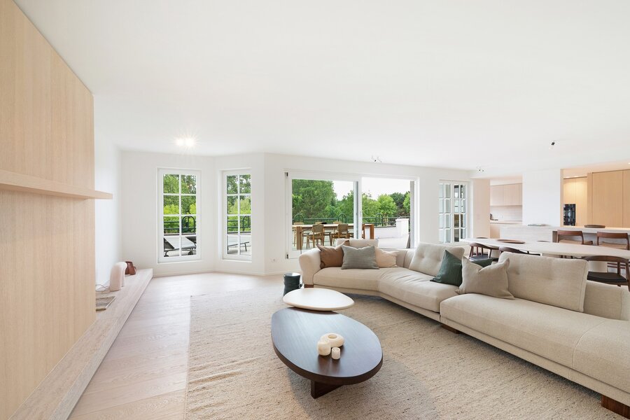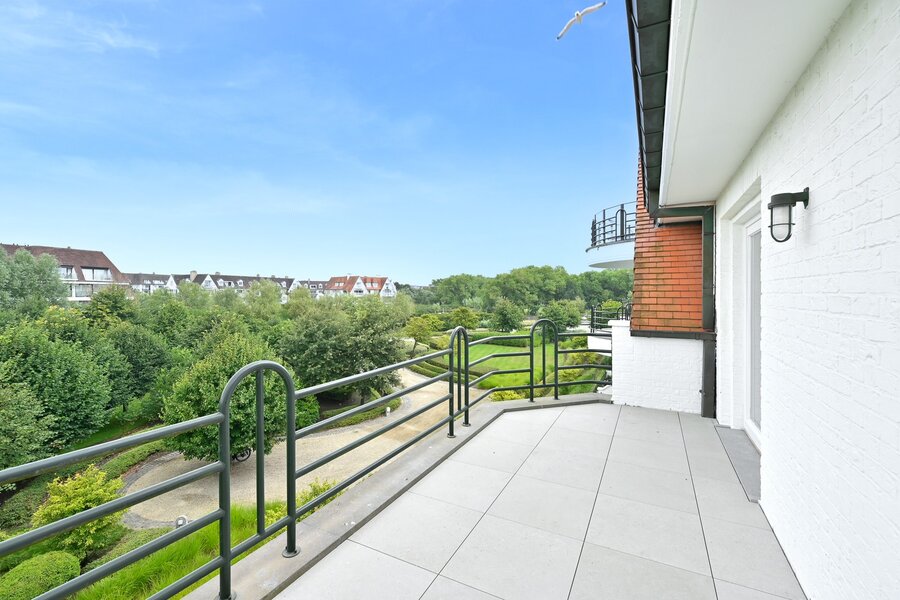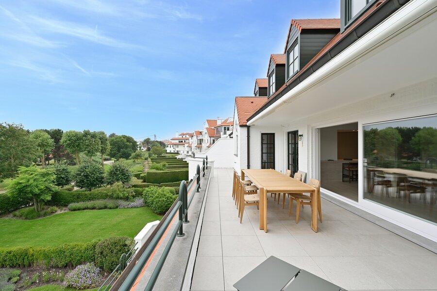 Dit exceptionele appartement met zuidgericht terras is gelegen in het uiterst prestigieuze en groene domein Tennis Gardens, nabij de Royal Zoute Tennis Club en op wandelafstand van zowel het strand als het natuurgebied Het Zwin. Via de inkomhal met gastentoilet en vestiaire betreedt men de royale leefruimte, waar licht, ruimte en rust centraal staan. Grote raampartijen geven uit op een breed, zonnig terras met een prachtig, open zicht op de tuinen van dit exclusieve privé domein – een oase van groen en privacy. Prachtige open keuken met ontbijthoek. Wasruimte/berging, discreet geïntegreerd voor optimaal comfort. Het nachtgedeelte omvat drie volwaardige tweepersoonsslaapkamers, elk voorzien van een privatieve douchekamer. Twee slaapkamers genieten van directe toegang tot een achterliggend terras. Mogelijkheid tot aankoop van een ruime garagebox binnen de residentie, geschikt voor twee wagens achter elkaar. Privatieve kelder. Fietsenberging. Een zeldzaam aanbod voor wie op zoek is naar een hoogwaardig appartement op een uitzonderlijke locatie, waar rust, groen en exclusiviteit harmonieus samenkomen.