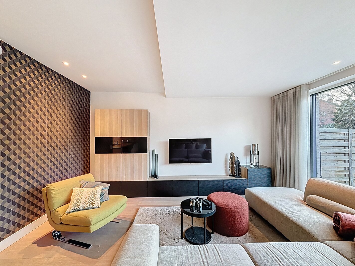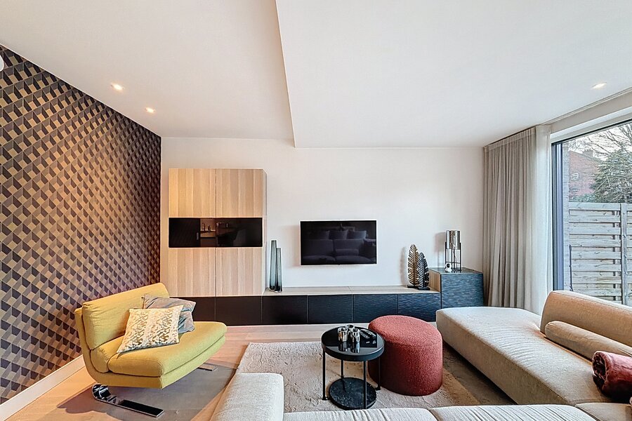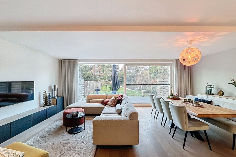 • Woonkamer met natuurlijke lichtinval en directe toegang tot de tuin