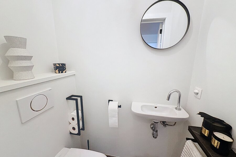 • Badkamer met douche en wastafel