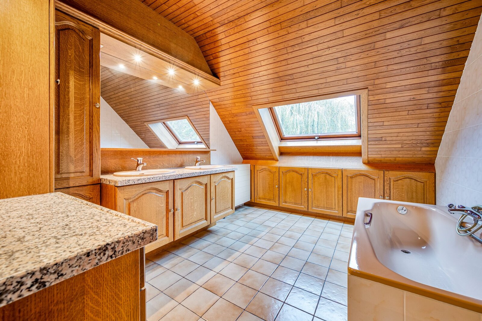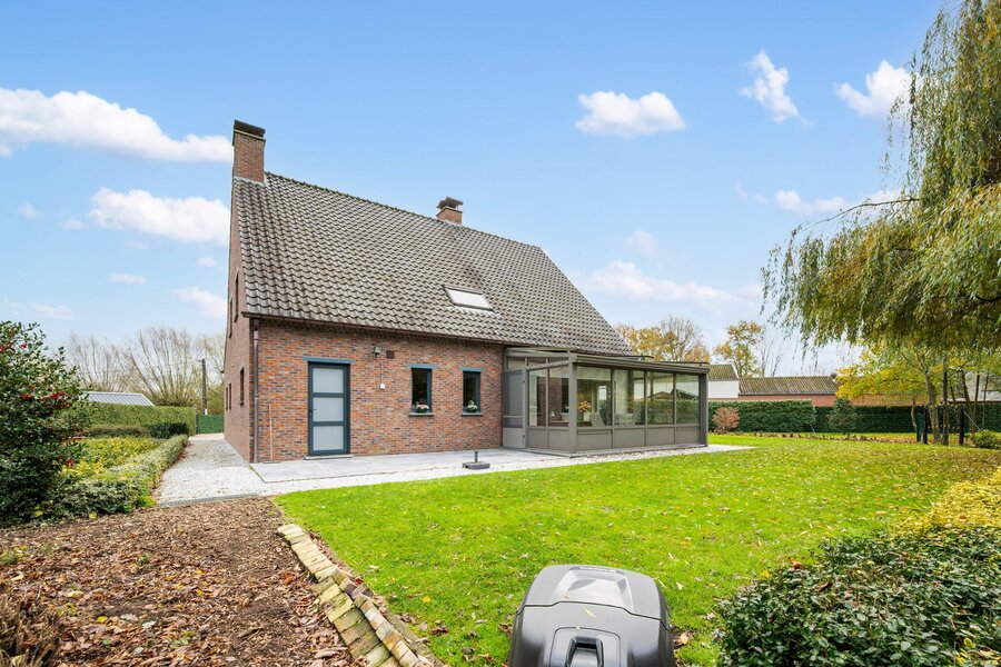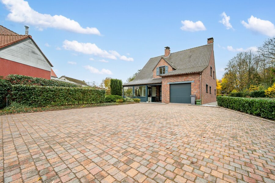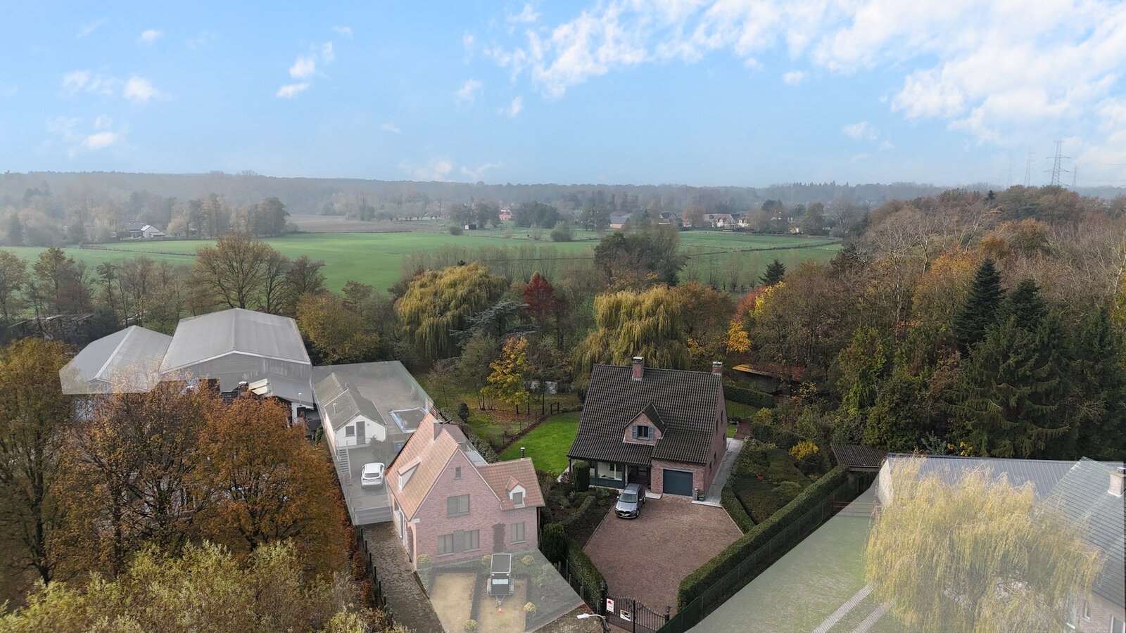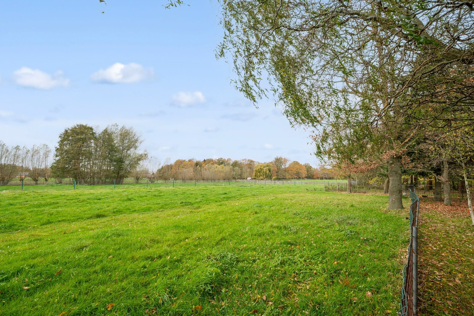 Dit landhuis met uitzonderlijke grond aan werd opgetrokken in 1988 met zeer degelijke en duurzame materialen in een mooie landelijke stijl. De indeling is als volgt: inkomhal met gastentoilet, aangename en gerenoveerde leefruimte met elekrische sfeerhaard, onderhouden keuken met voldoende kastruimte en toestellen waar men ook kan eten, veranda met knap uitzicht over de tuin, aparte berging/wasplaats, grote inpandige garage. Op de verdieping bevinden zich 4 grote slaapkamers op een tegelvloer, ruime badkamer met dubbele lavabo, ligbad en douche. Valluik naar de geïsoleerde zolder wat ideaal is als bergruimte. Buiten: oprit voor verschillende autos, aangelegde tuin met vijver, groot stuk weiland, stallingen, bos,...MAAK SPOEDIG UW AFSPRAAK OM DEZE EXCLUSIEVE EIGENDOM TE BEZOEKEN!